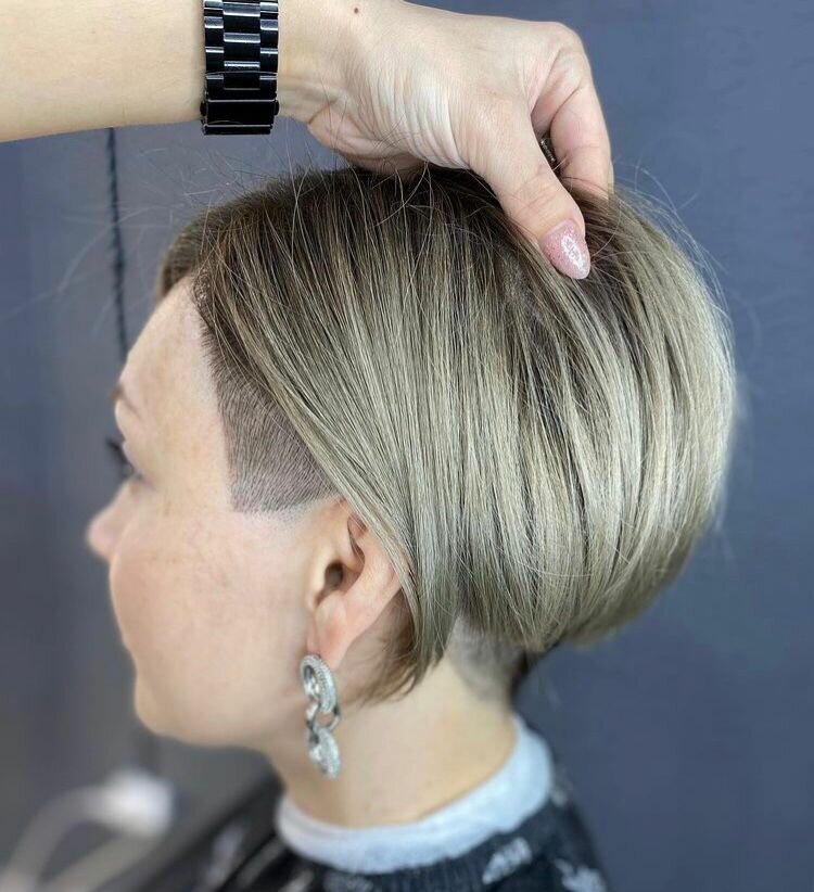 Стрижка, по длине плавно переходящая на 0мм. Выполняется с помощью машинки. Включает в себя мытье волос с последующей укладкой феном,с применением стайлинговых средств. Стоимость варьируется от 1100 до 1300 в зависимости от мастера.