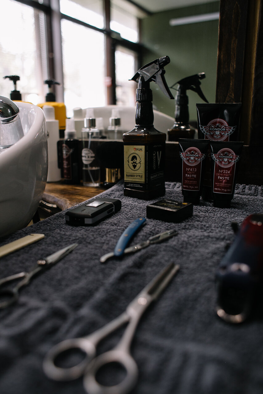 - Тематический, стильный, классический интерьер барбершопа (не «дешевая парикмахерская»)