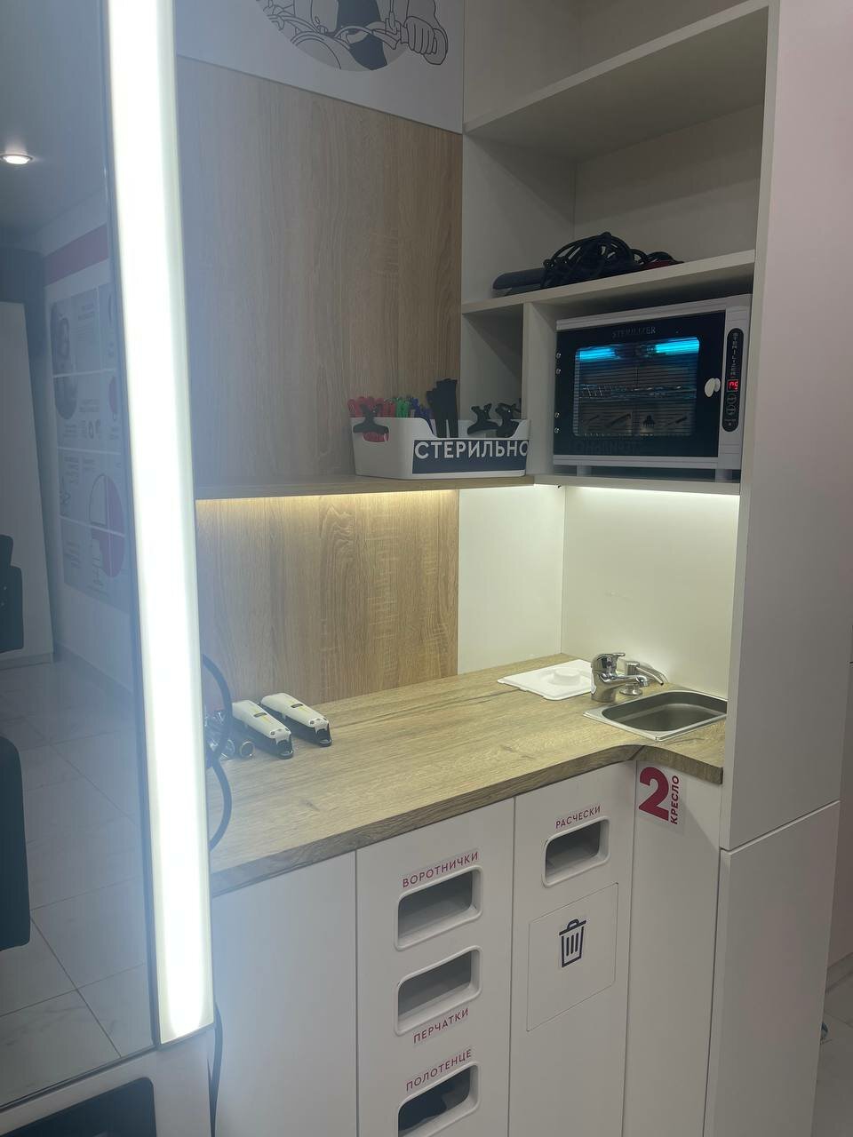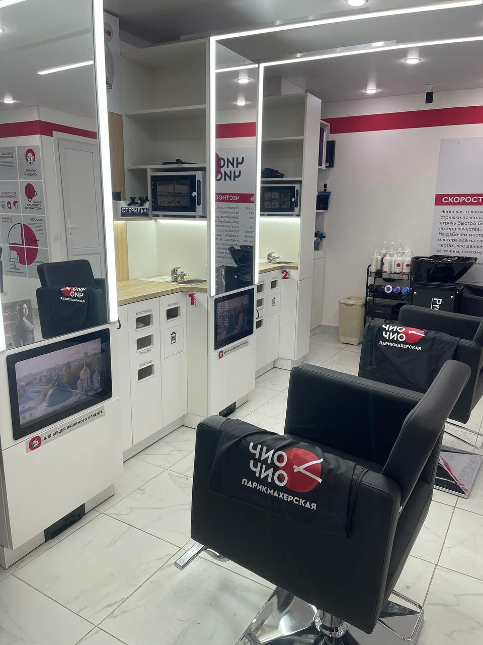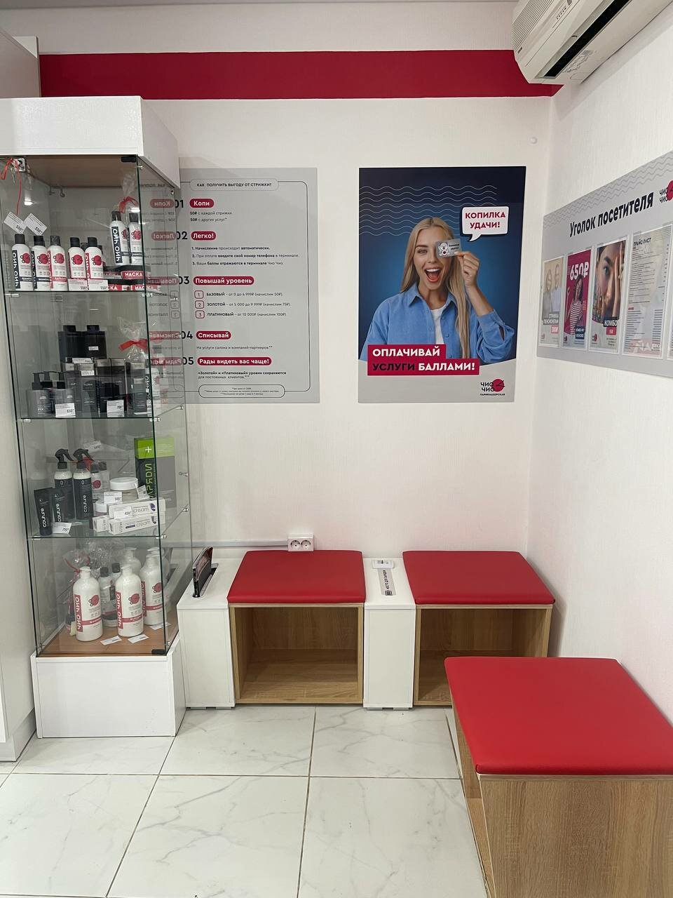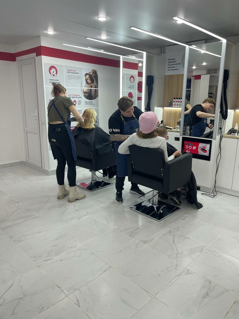 в салоне чисто и комфортно. попросили парикмахера убрать секущиеся концы, но она не выполнила просьбу, поэтому одна звезда.подстригли ещё очень криво