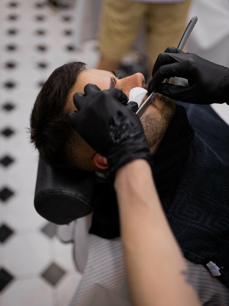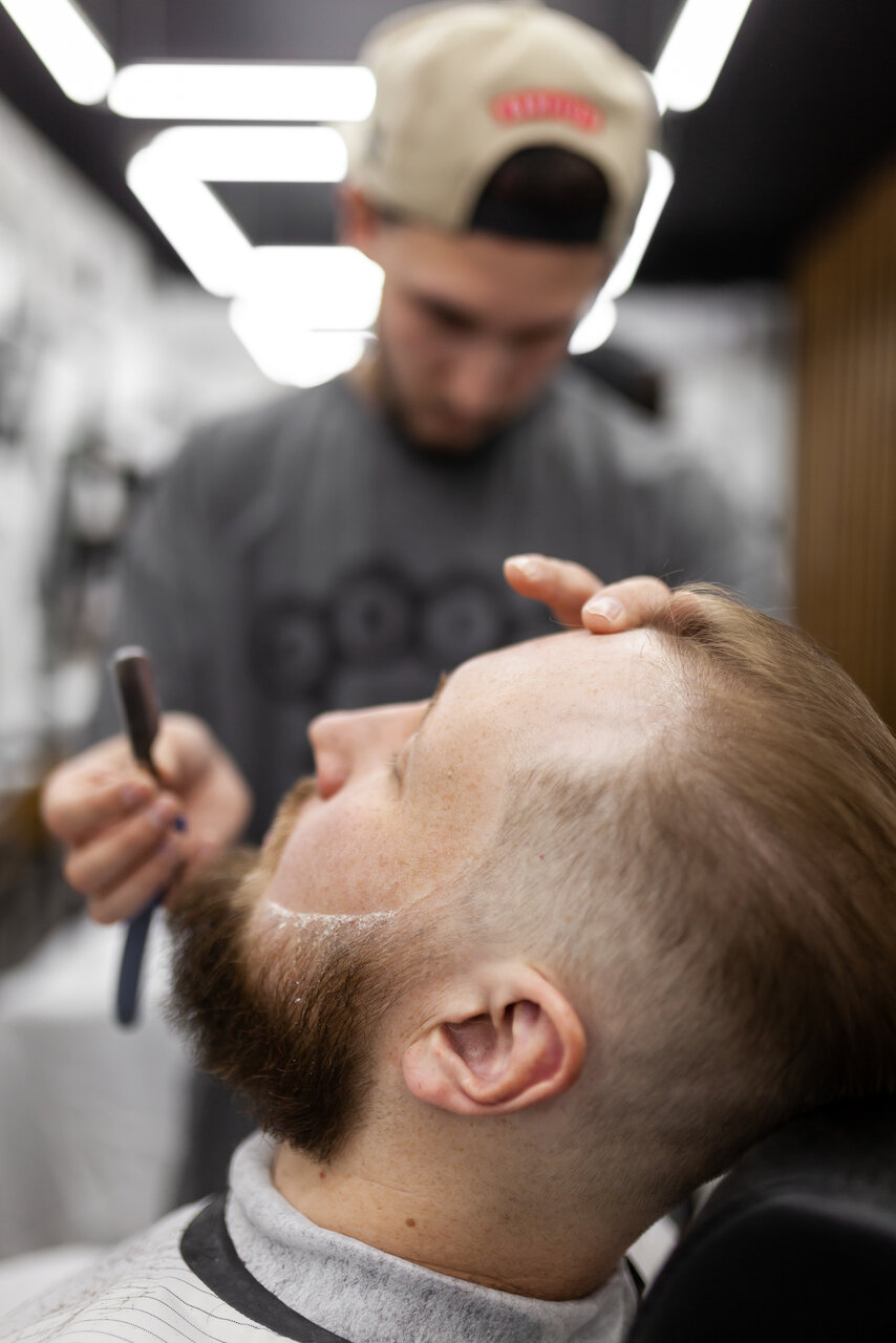 Комплексный уход за бородой, включающий в себя моделирование бороды с использованием опасной бритвы и SPA-процедуру.