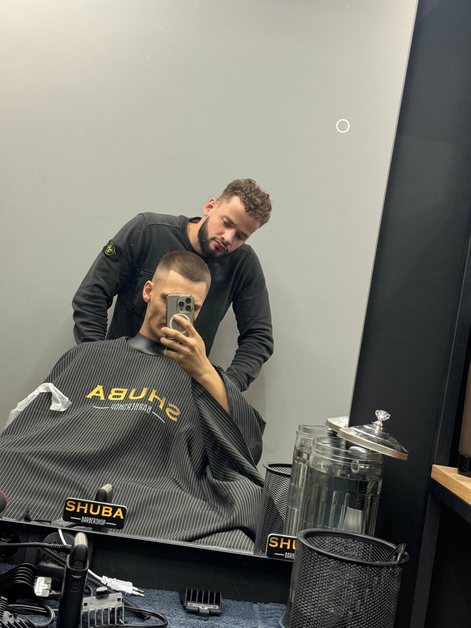 Барбер Михаил , по моему, наращивает свое умение в стрижках , понадобилось больше времени , сделал бока идеально Не смог сам завершить верх , попросил барбера Сергея подсказать , подстриг с подсказками , хорошо Сына подстриг барбер Сергей на отлично , Сергею отдельный рекспект Был очень удивлен от цены , сказали за маленькую голову сына 1200₽ , ребята , я все понимаю — центр города , аренда и тд , но вы клиентов привлекаете , то есть я по честной цене , а сын за полную стоимость , для сравнения в другом барбер шопе стрижемся вдвоем за 1500₽ Так что это очень испортило первое впечатление от салона К ребятам нет вопросов.