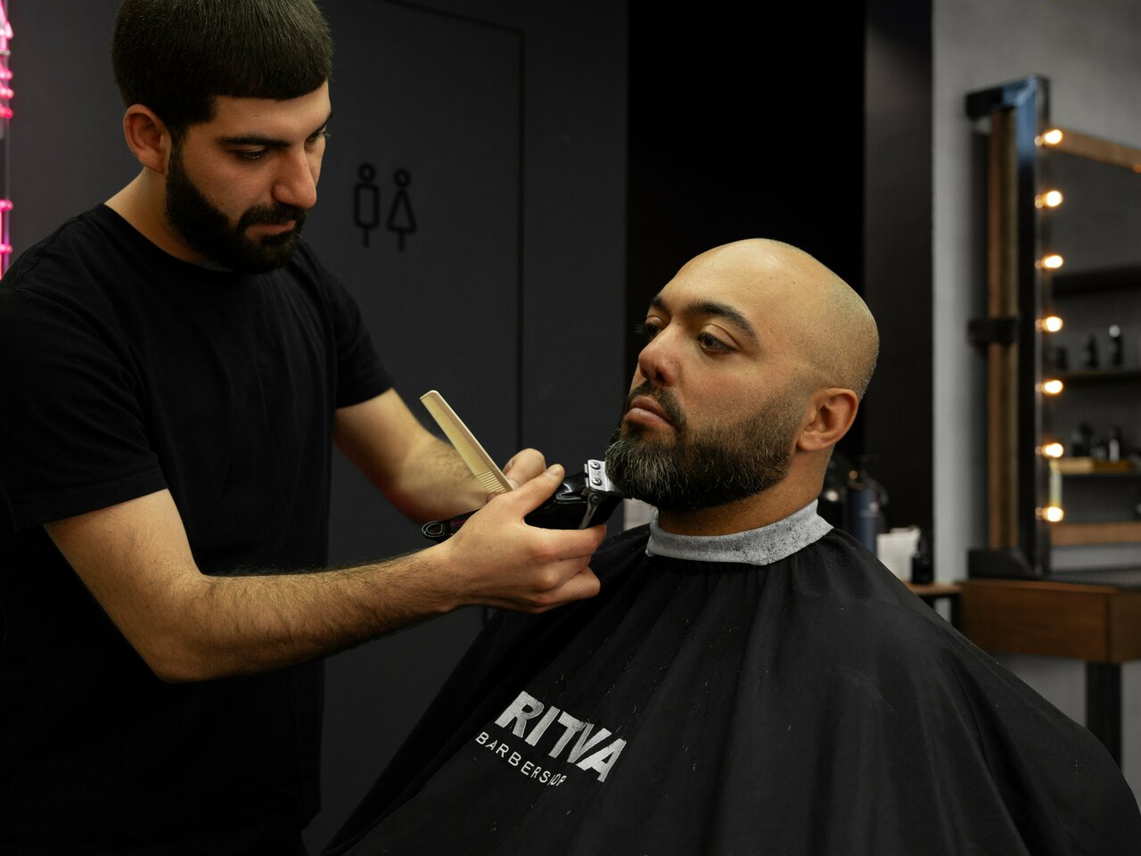 Тонирование бороды — услуга окрашивания бороды, после которой волосы приобретут красивый ровный тон, а окантовка станет более выраженной. Процедура подойдёт тем мужчинам, у которых проявляется седина или неравномерности в цвете.