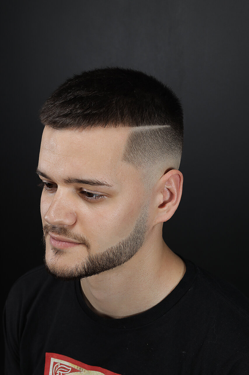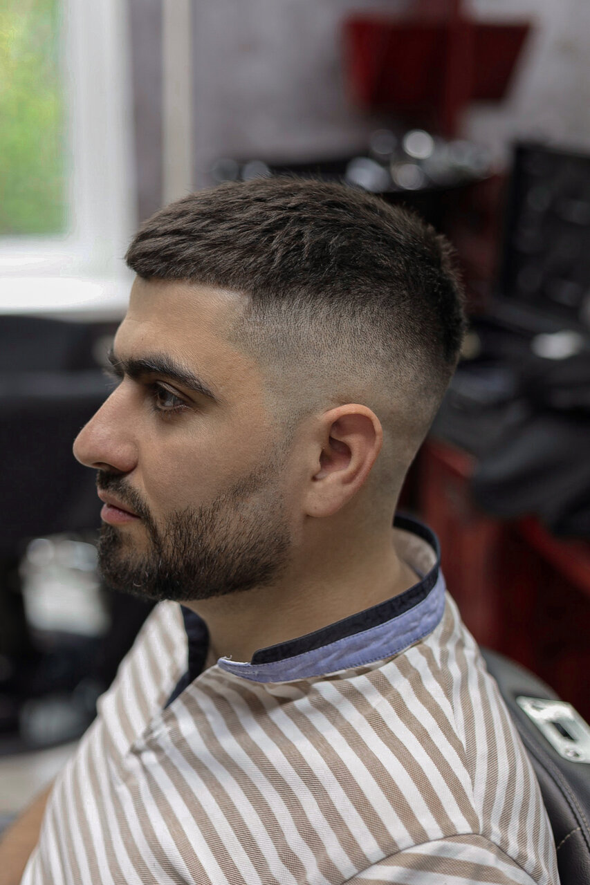 В данной услуге входит, мытьё головы один раз (в предпочтение посетителя до или после стрижки) стрижка верхней зоны головы а также переход, за исключением fade.