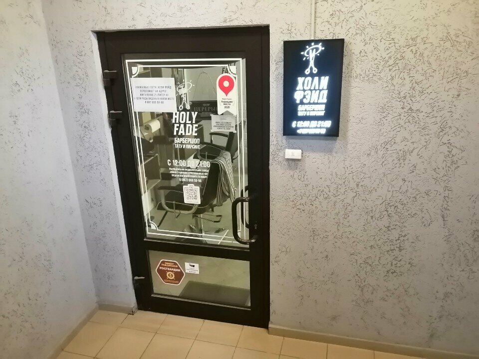 Помимо основных услуг, «Холи Фэйд» предоставляет такие дополнительные услуги, как тату и пирсинг, что расширяет возможности для создания индивидуального образа. Для посещения необходима предварительная запись. Салон работает со вторника по субботу с 12:00 до 21:00. Узнать более подробную информацию или записаться можно по телефону +7 (967) 668-59-96, а также на сайте https://dikidi.net/362933.