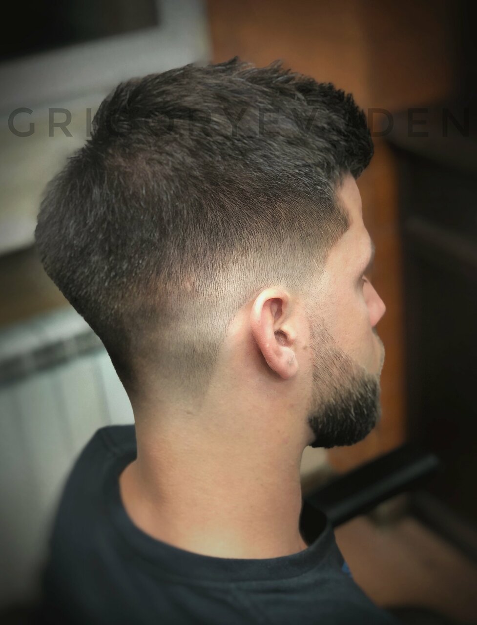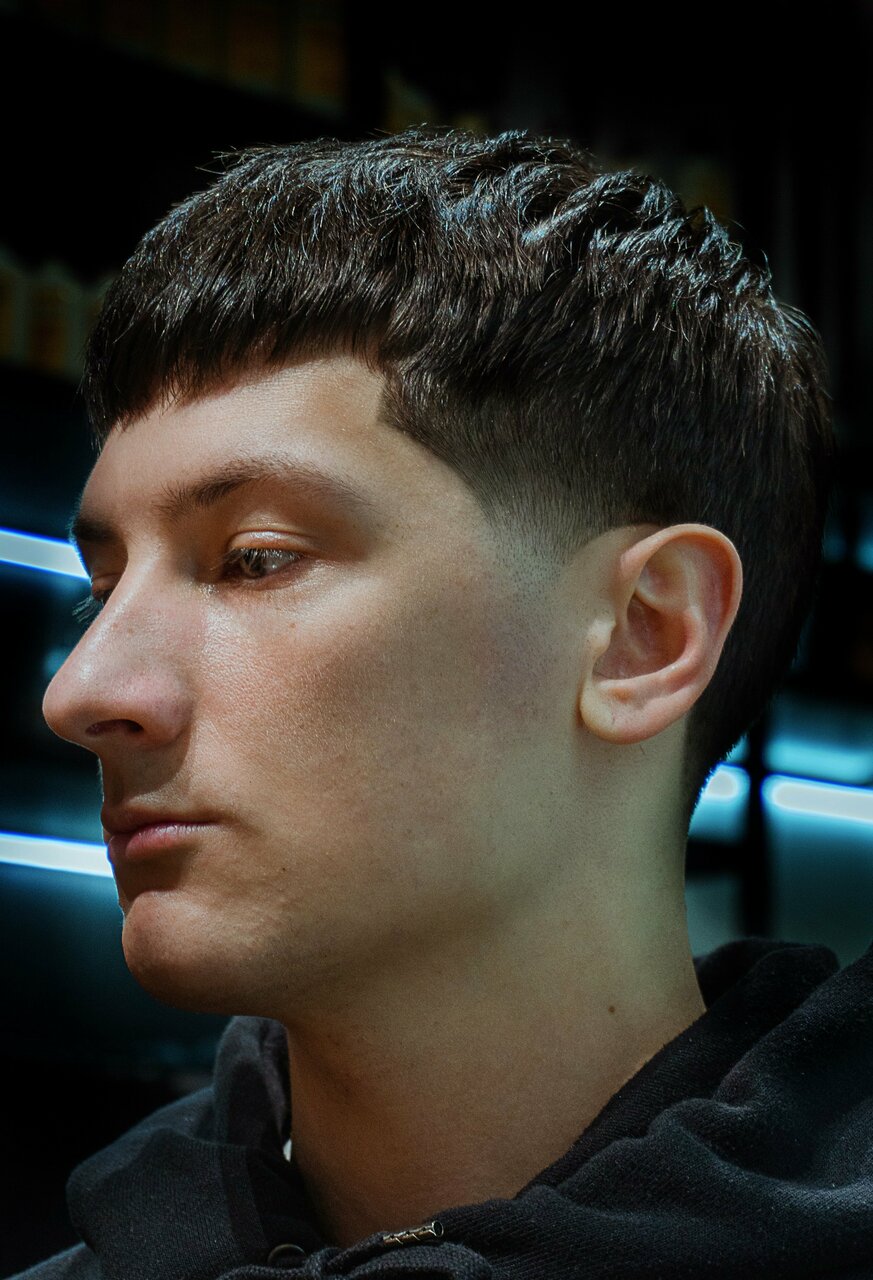 Данная стрижка выполняется машинками (машинка, триммер, шейвер). Максимальная длина сверху 16мм, с переходом с нуля (фэйд). В услугу входит две помывки головы, до и после. В завершении окантовка контуров стрижки бритвой с одноразовым лезвием.