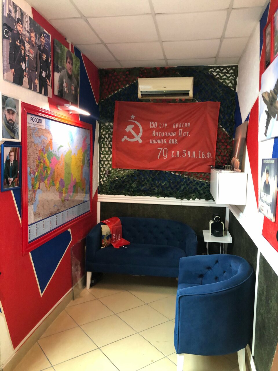 - Уникальный тематический интерьер (патриотичный стиль, экспонаты)