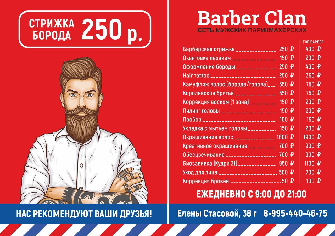 Скачать прайс-лист Барбер Клан на ноябрь 2025 года