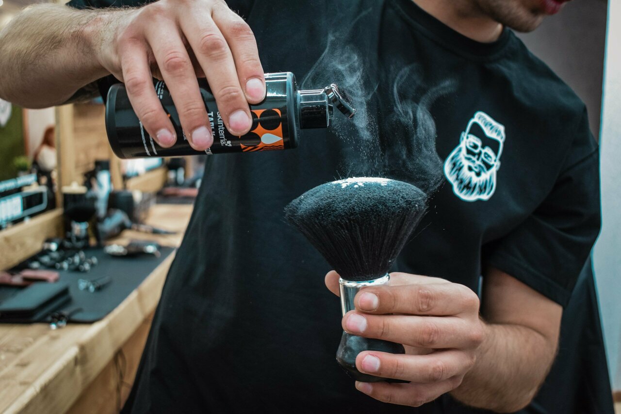 Создание формы бороды и четких контуров с использованием ножниц, машинок, шейвера и бритвы-шаветт с одноразовым лезвием.