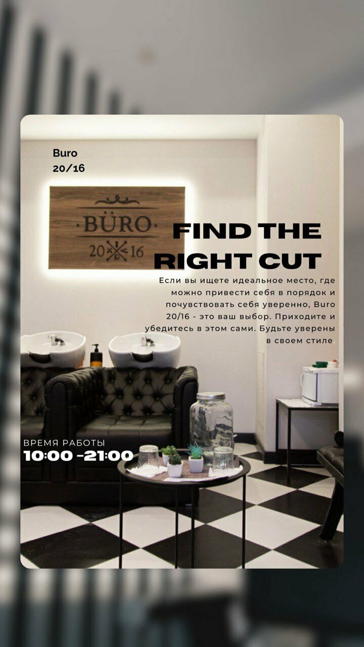 Для удобства клиентов в салоне действует предварительная запись. Büro 20/16 работает ежедневно с 10:00 до 21:00. Узнать более подробную информацию или записаться можно по телефону +375 29 150-29-29, а также на сайте https://buroone.by/.