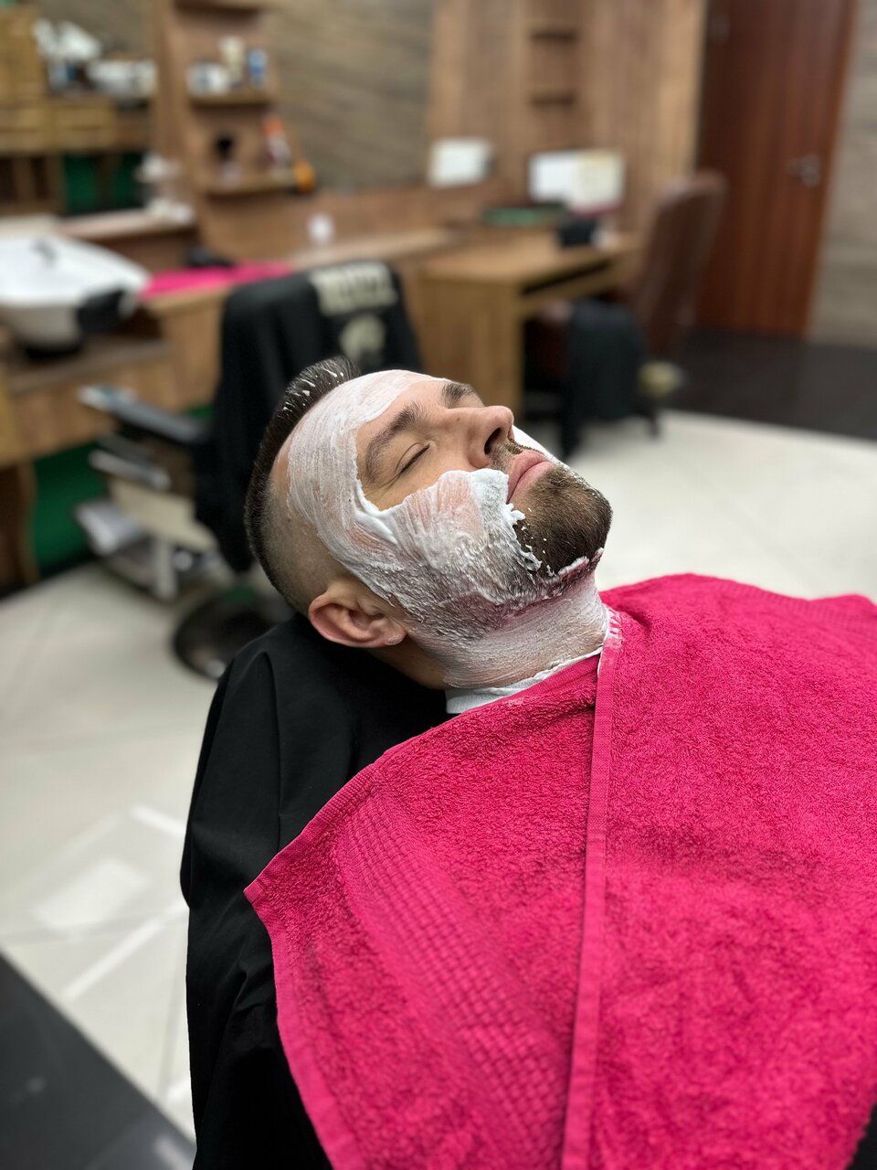 распаривание , бритье опасной бритвой, лосьон после бритья