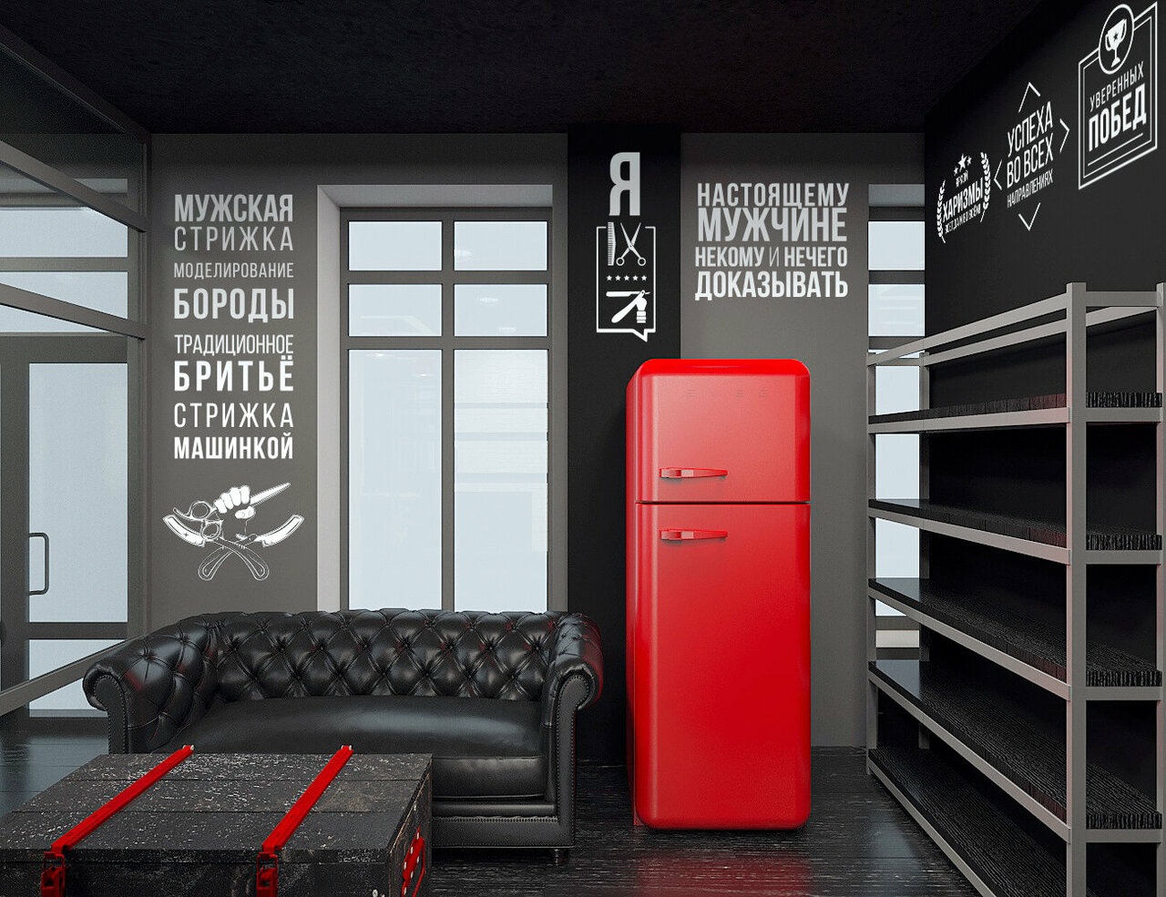 - Отменный барбершоп (интерьер, сотрудники)