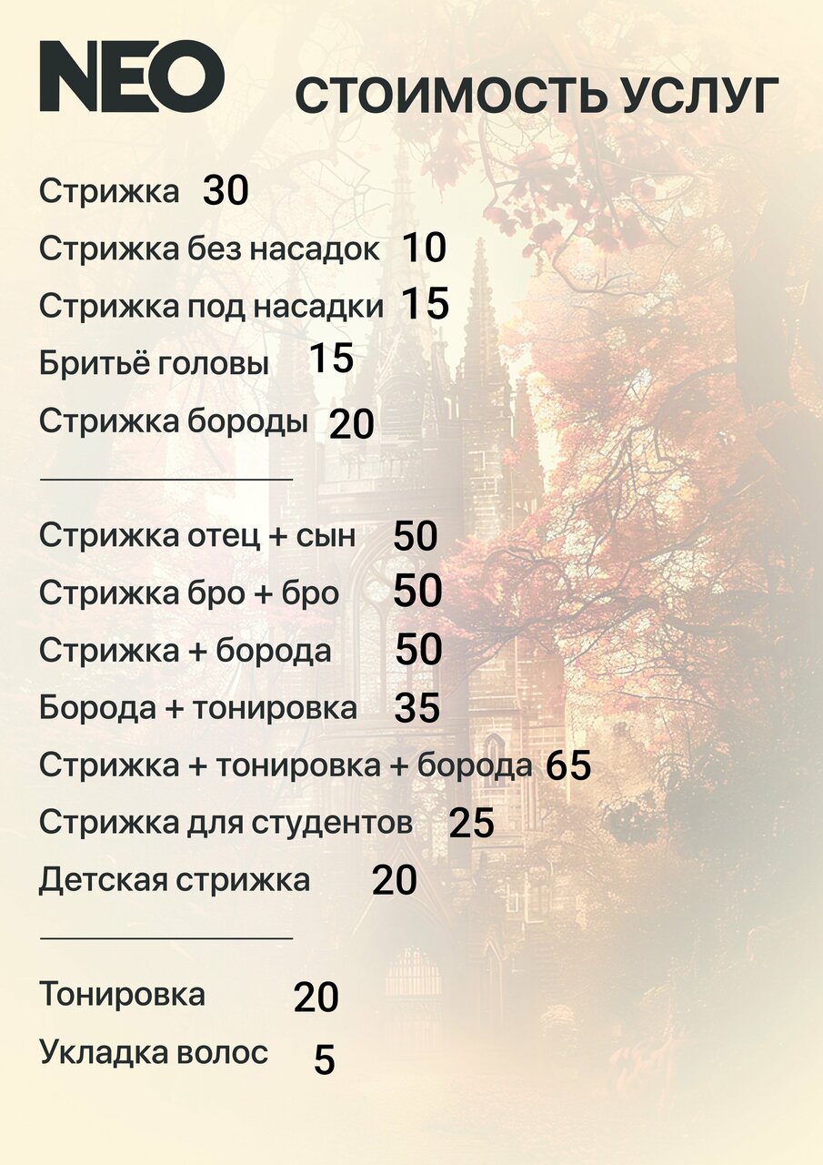 Информация о барбершоп Нео в Могилеве актуализирована в ноябре 2025 года: