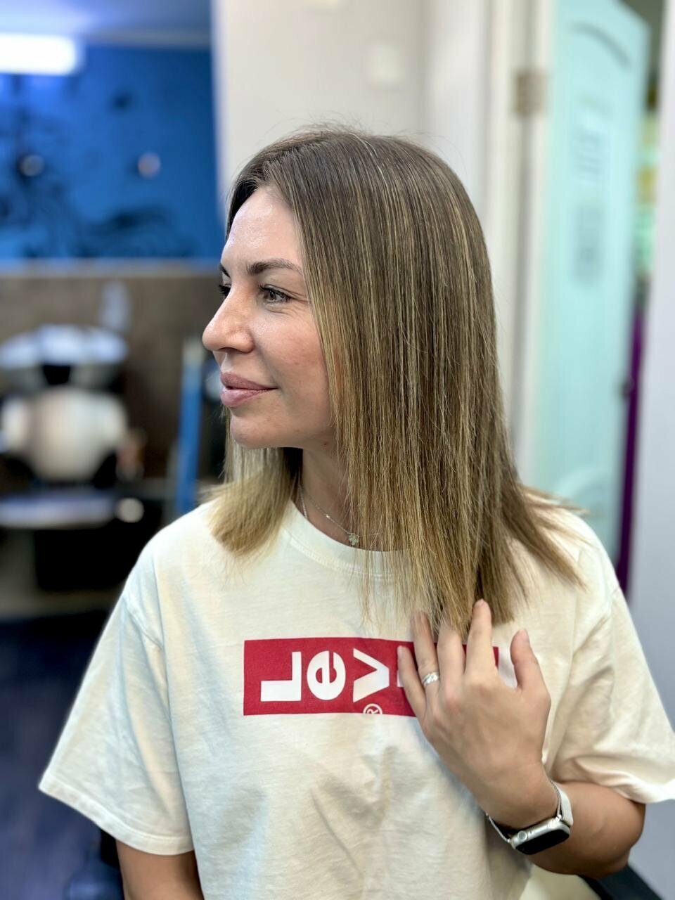 Отлично покрасили, голову не сожгли, хотя высветвяли жёстко. Очень приятный мастер, аккуратный, подстригла просто идеально. Благодарю!