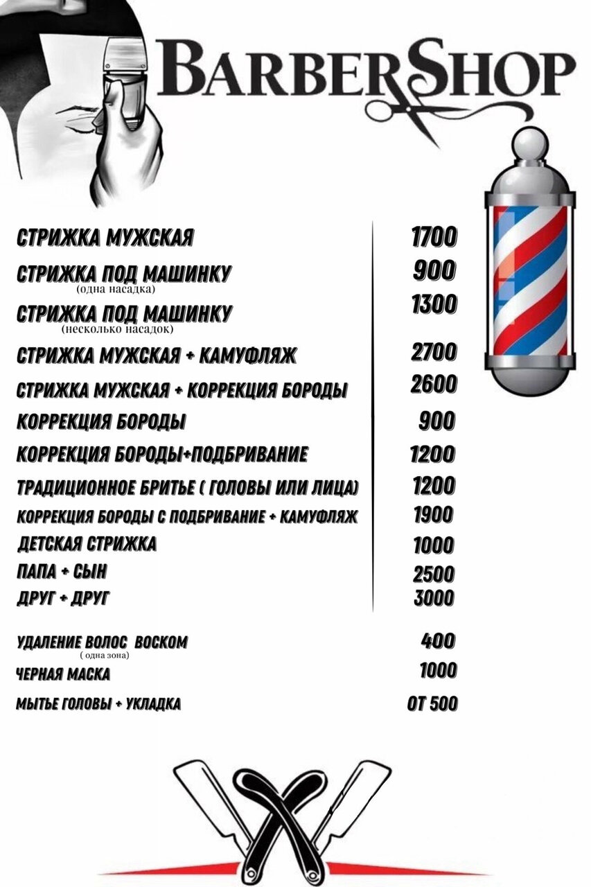 Скачать прайс-лист Барбершоп на ноябрь 2025 года