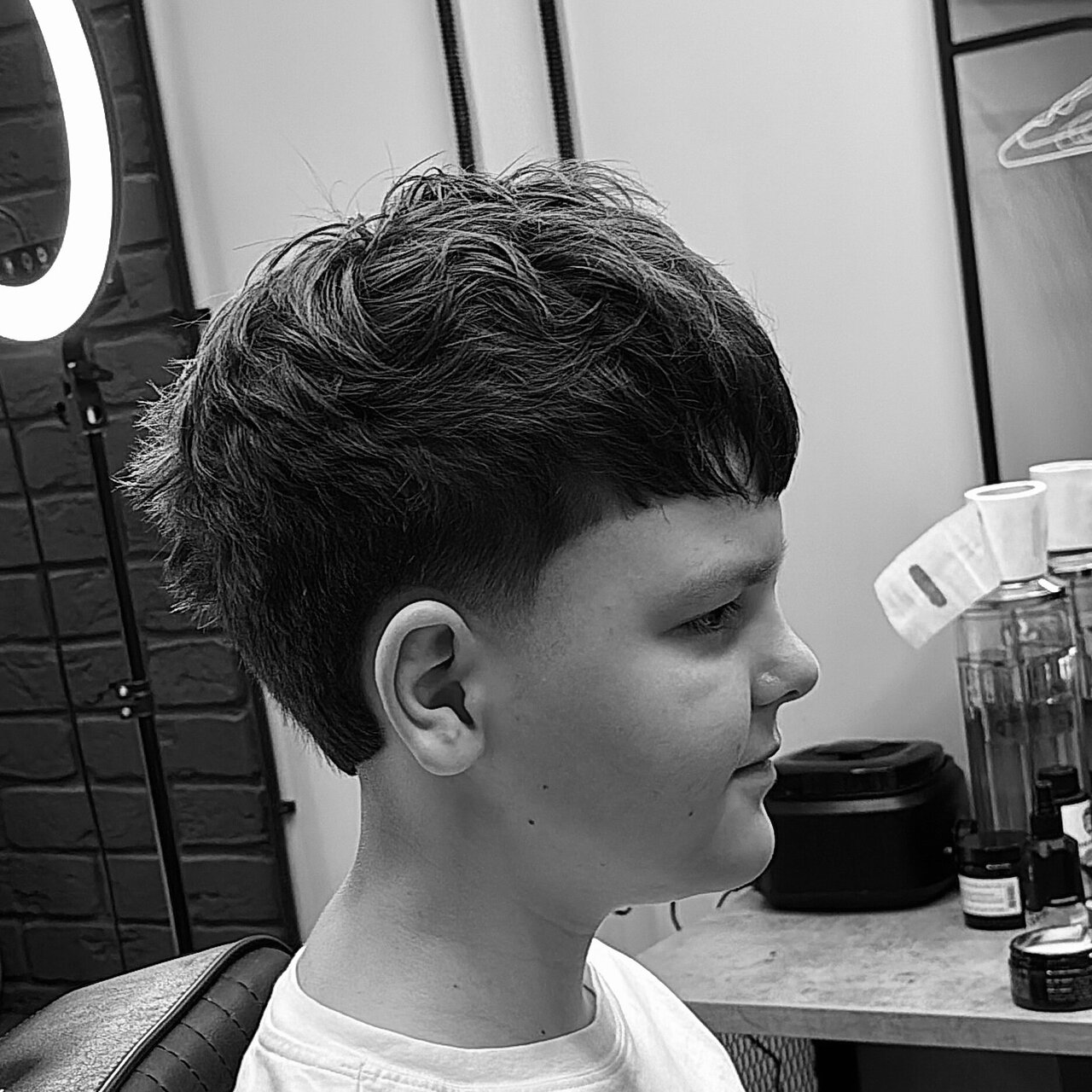 Стрижка как у папы — легко! Ухоженность важна в любом возрасте, позвольте сыну с ранних лет почувствовать себя настоящим мужчиной, окунувшись в атмосферу барбершопа. Процедура стрижки для детей от 4 до 12 лет включает в себя мытье головы, стрижку с и