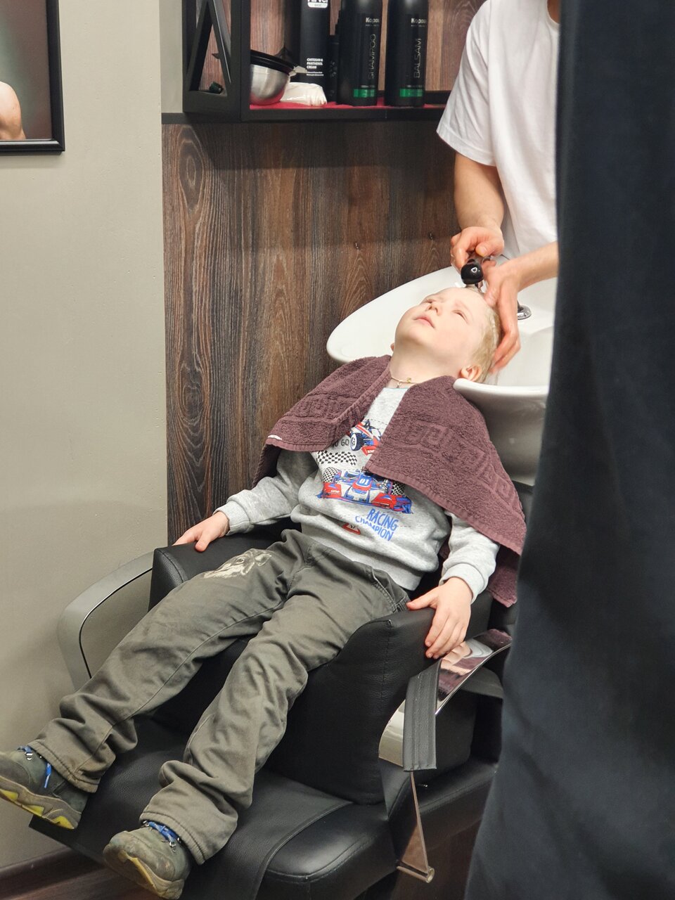 Стрижка как у папы — легко! Ухоженность важна в любом возрасте, позвольте сыну с ранних лет почувствовать себя настоящим мужчиной, окунувшись в атмосферу барбершопа. Процедура стрижки для детей от 4 до 12 лет включает в себя мытье головы, стрижку с и