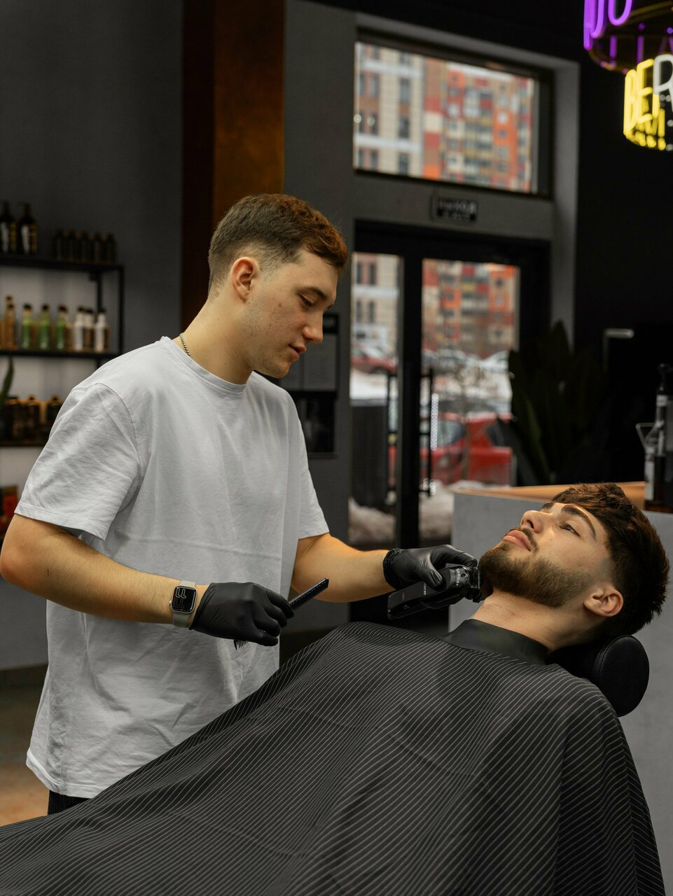 - Дополнительные услуги (коррекция бороды, маски для лица).