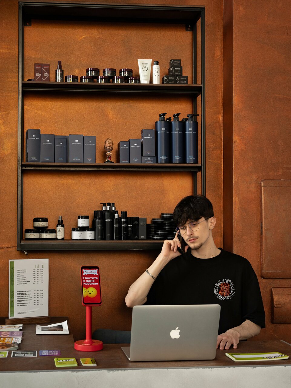 Заходил в шоп подровнять челку и сделать укладку, сделали все на высшем уровне, взял себе глину для волос с парфюмом — запах пушка