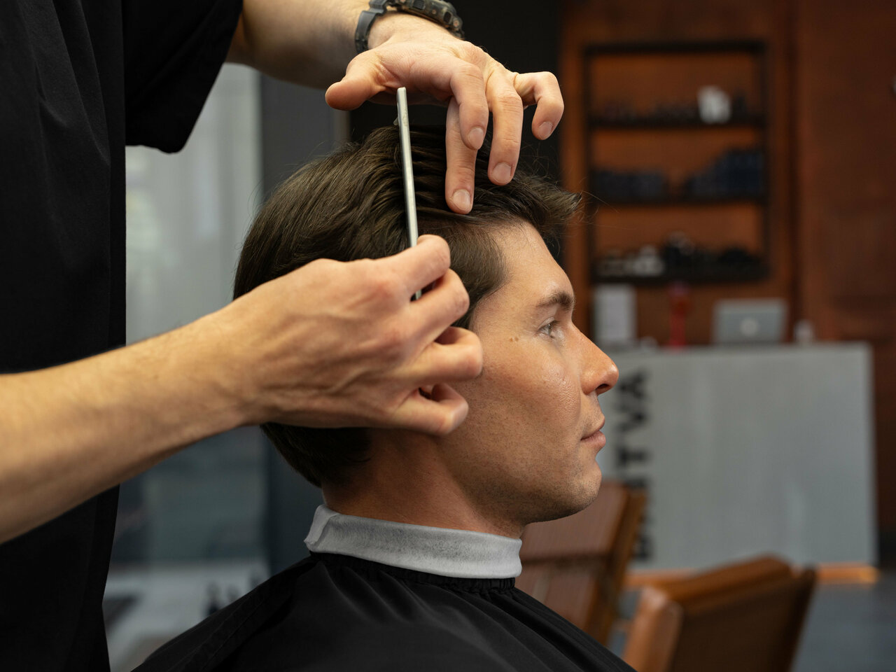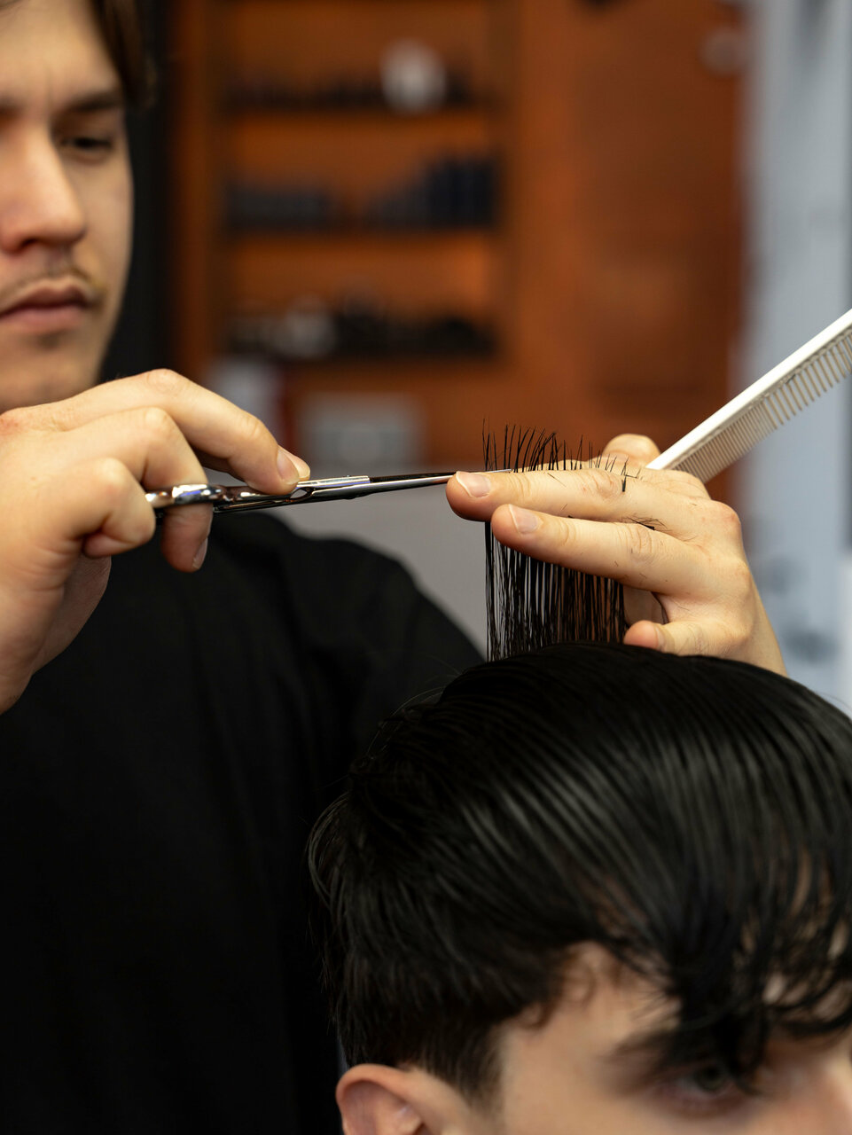 Чем стрижка на ножницах отличается от комбинированной стрижки с использованием машинки? Главное преимущество в том, что ваша стрижка продержится не 3 недели, а 1,5 месяца. Стрижка на ножницах — лучший вариант для практичных мужчин, ценящих свое время
