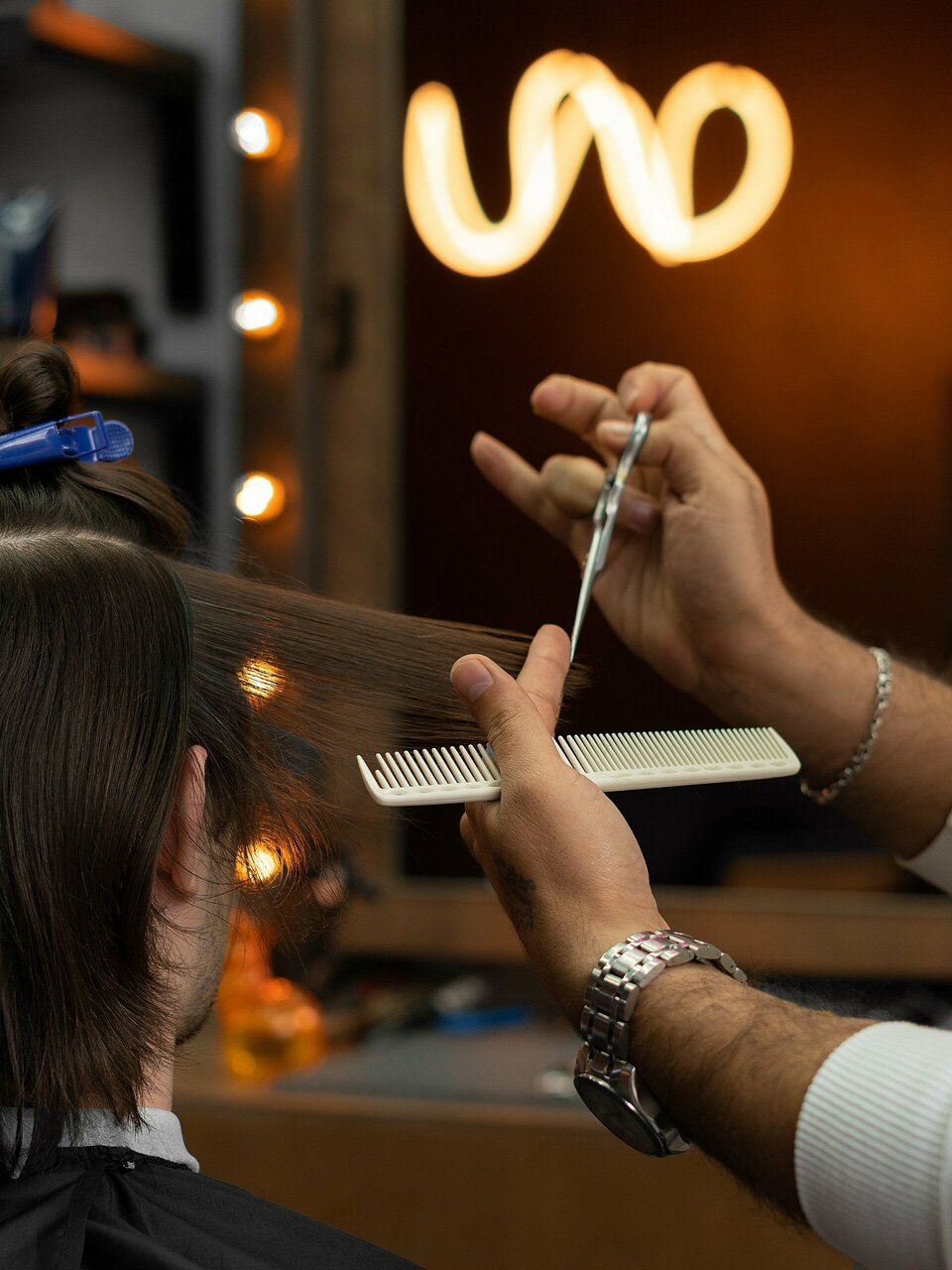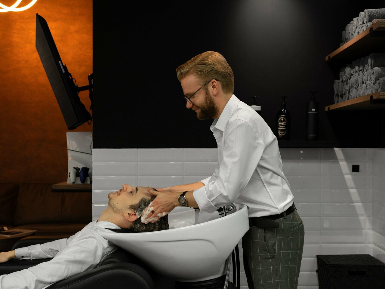 - Сервис на уровне: горячее полотенце, четкие линии и идеальная укладка