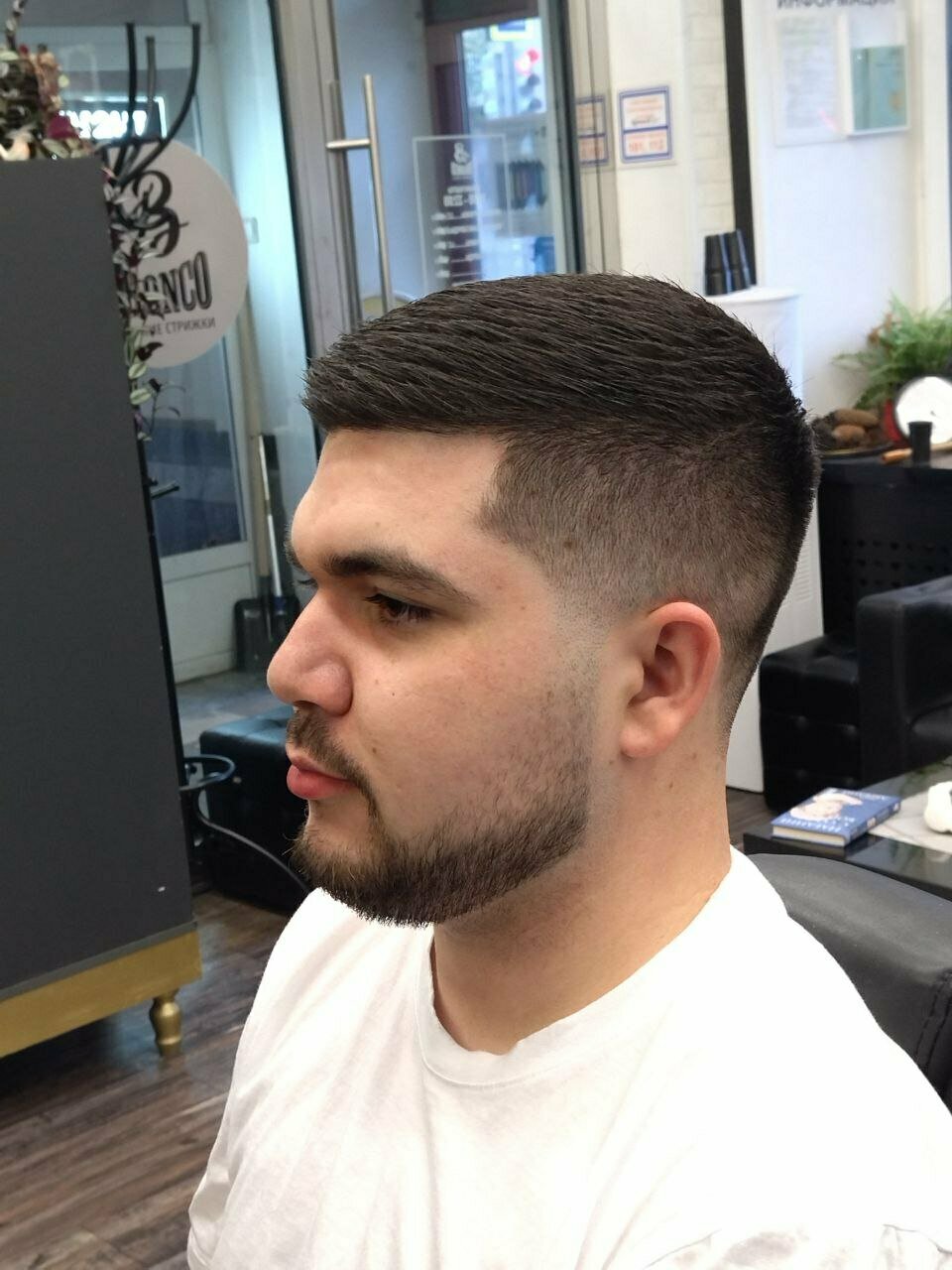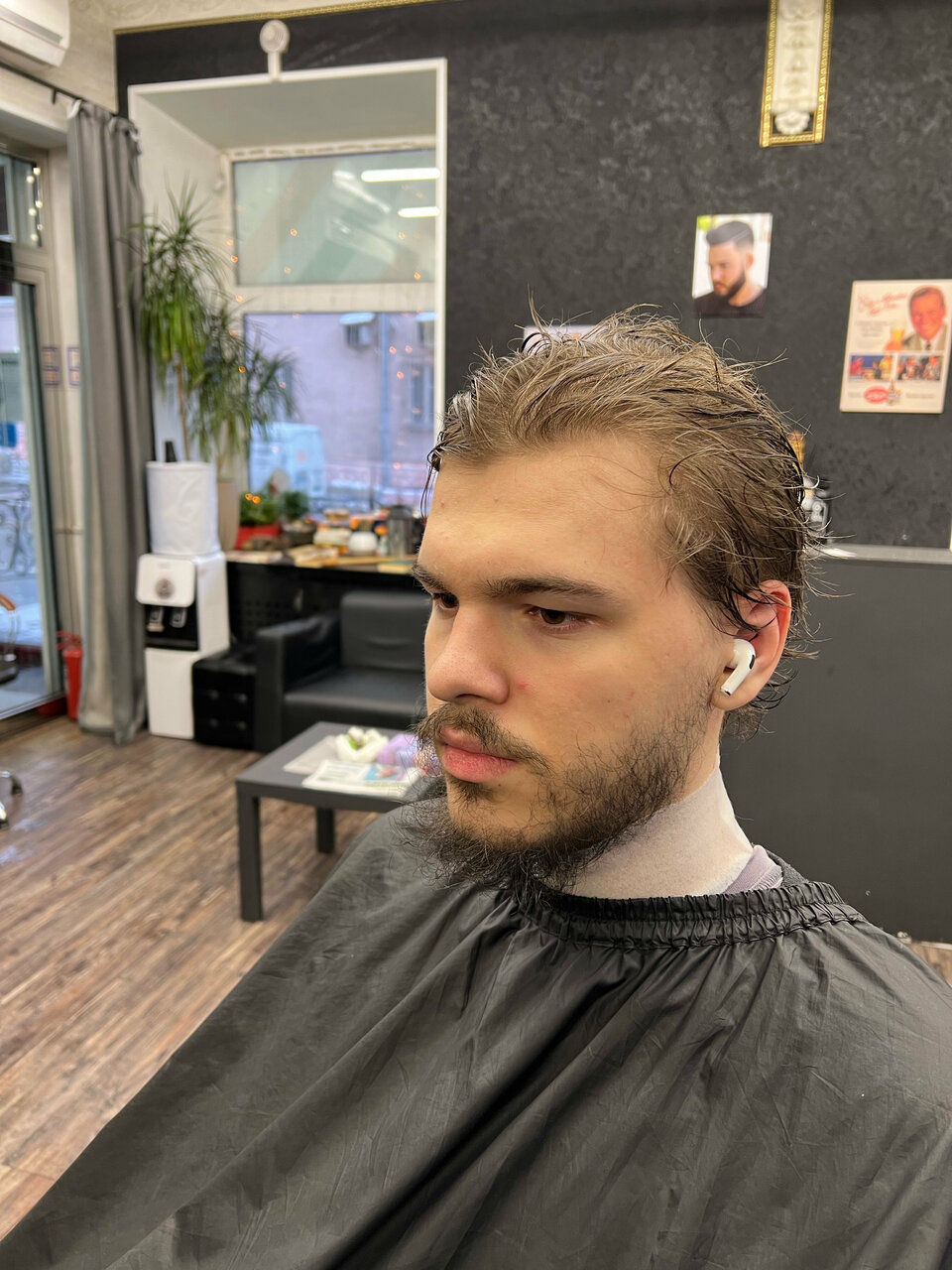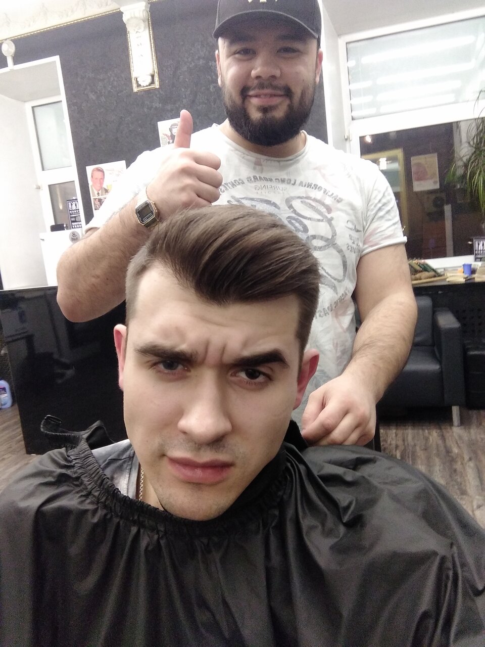 Посредственная стрижка за средний прайс, неровно вывели контур бороды на шее и на щеках, мастер исправил при указании на них (вопрос — что было бы если я не вгляделся внимательно?) Не рекомендую