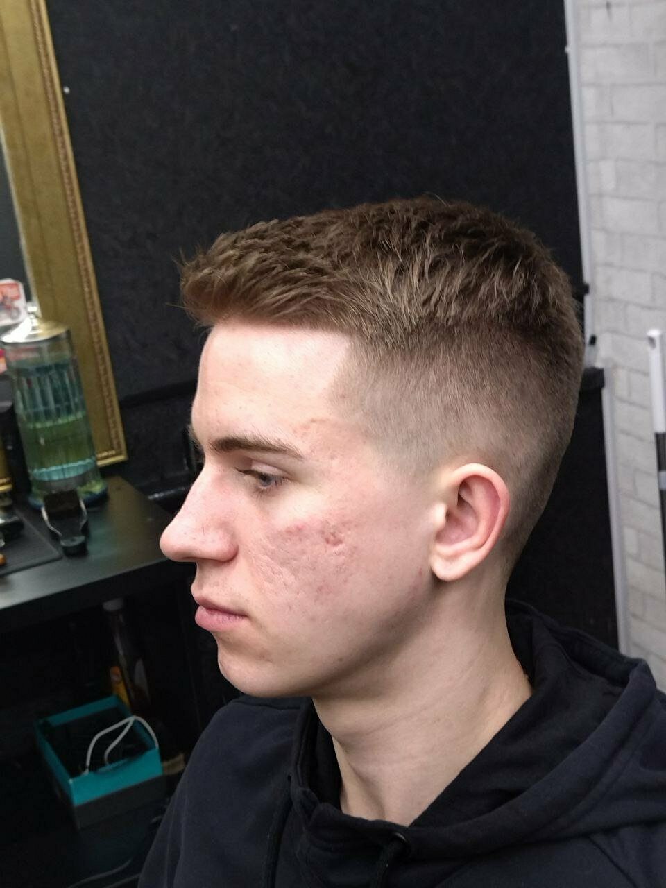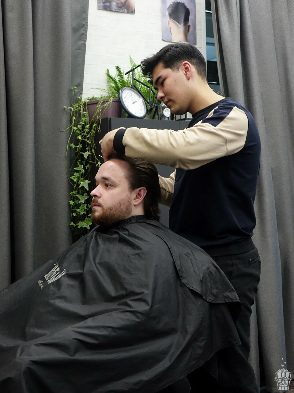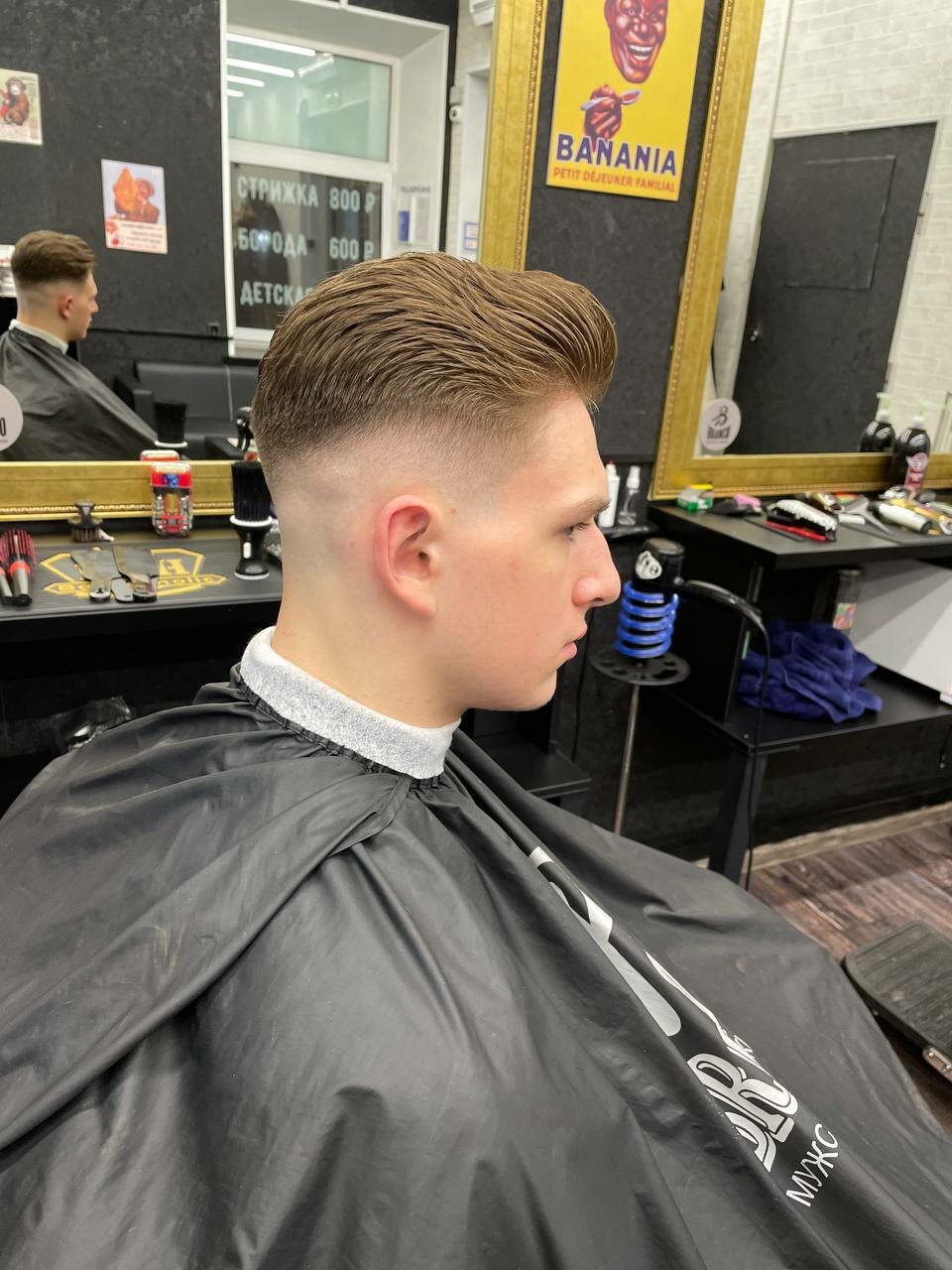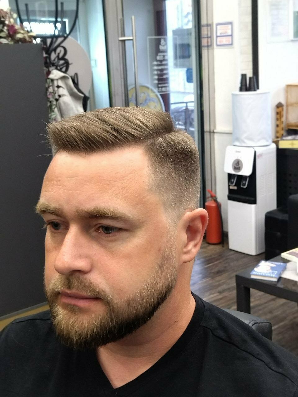 Посредственная стрижка за средний прайс, неровно вывели контур бороды на шее и на щеках, мастер исправил при указании на них (вопрос — что было бы если я не вгляделся внимательно?) Не рекомендую