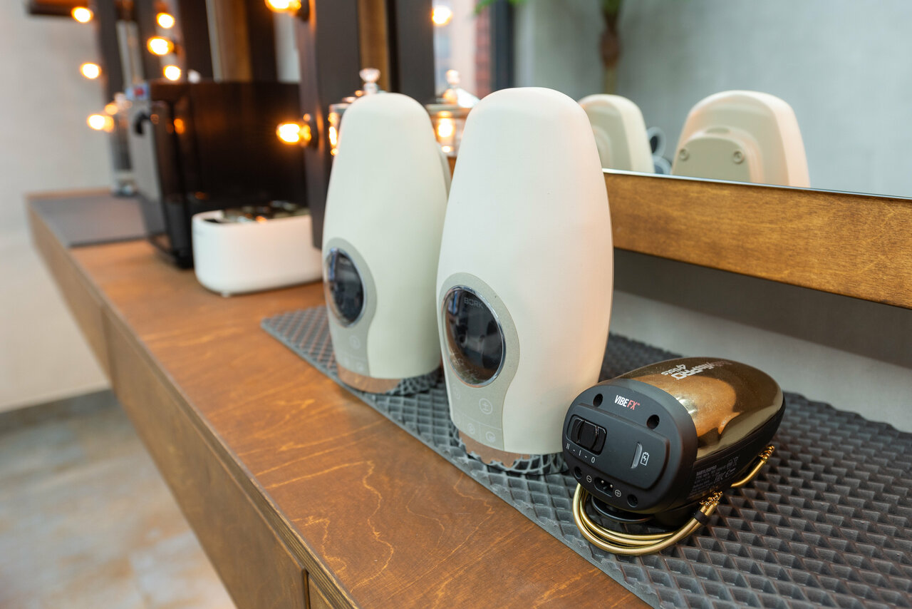 Формирование бороды с распариванием и четкой окантовкой — для идеального завершения твоего образа. Доступны массажеры для глаз, шеи и рук от BORK, чтобы ты расслабился, пока борода борода становится идеальной. Лучшая версия твоего образа — здесь.
