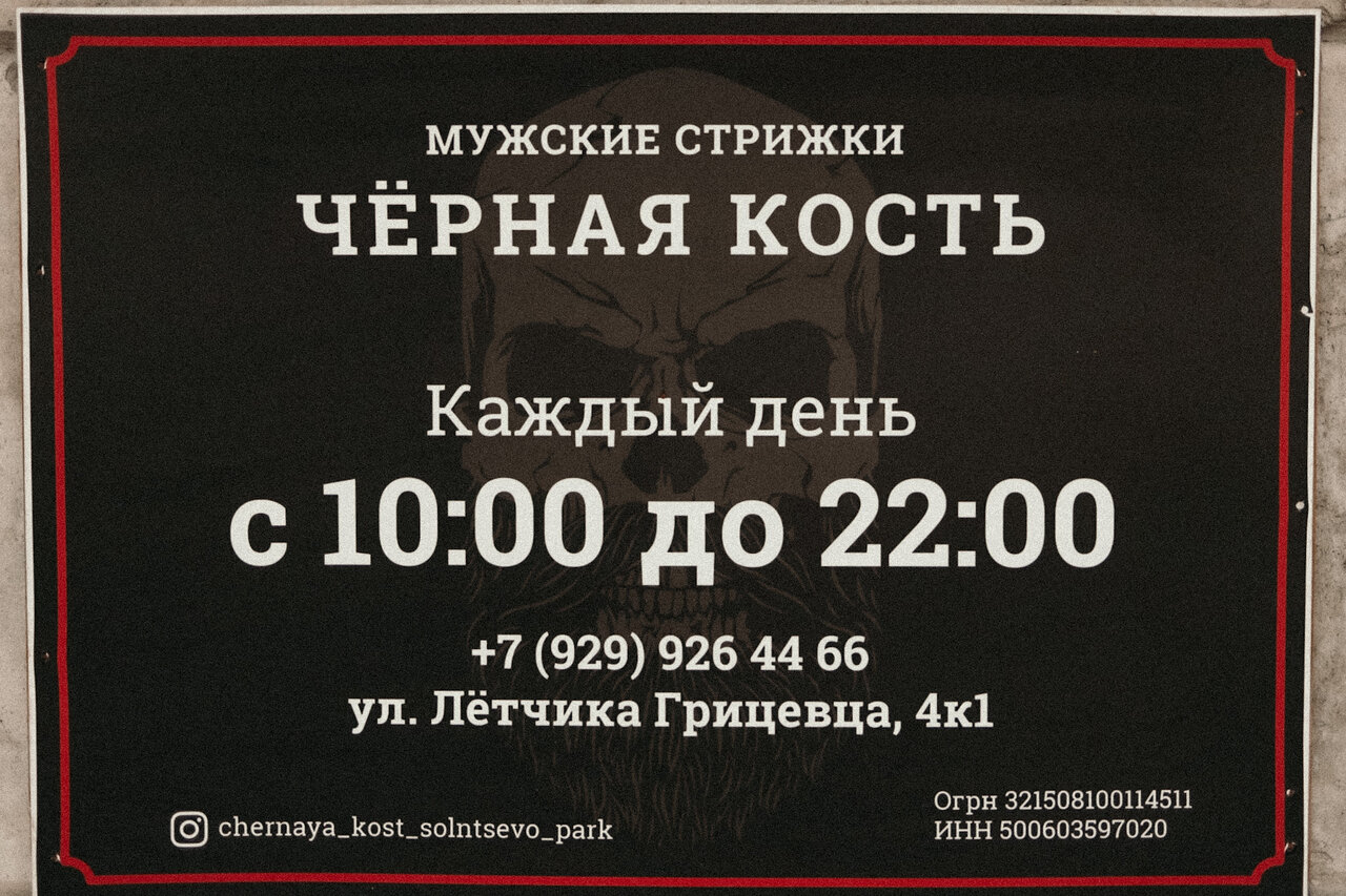 Информация о барбершоп Черная Кость в Москве актуализирована в ноябре 2025 года: