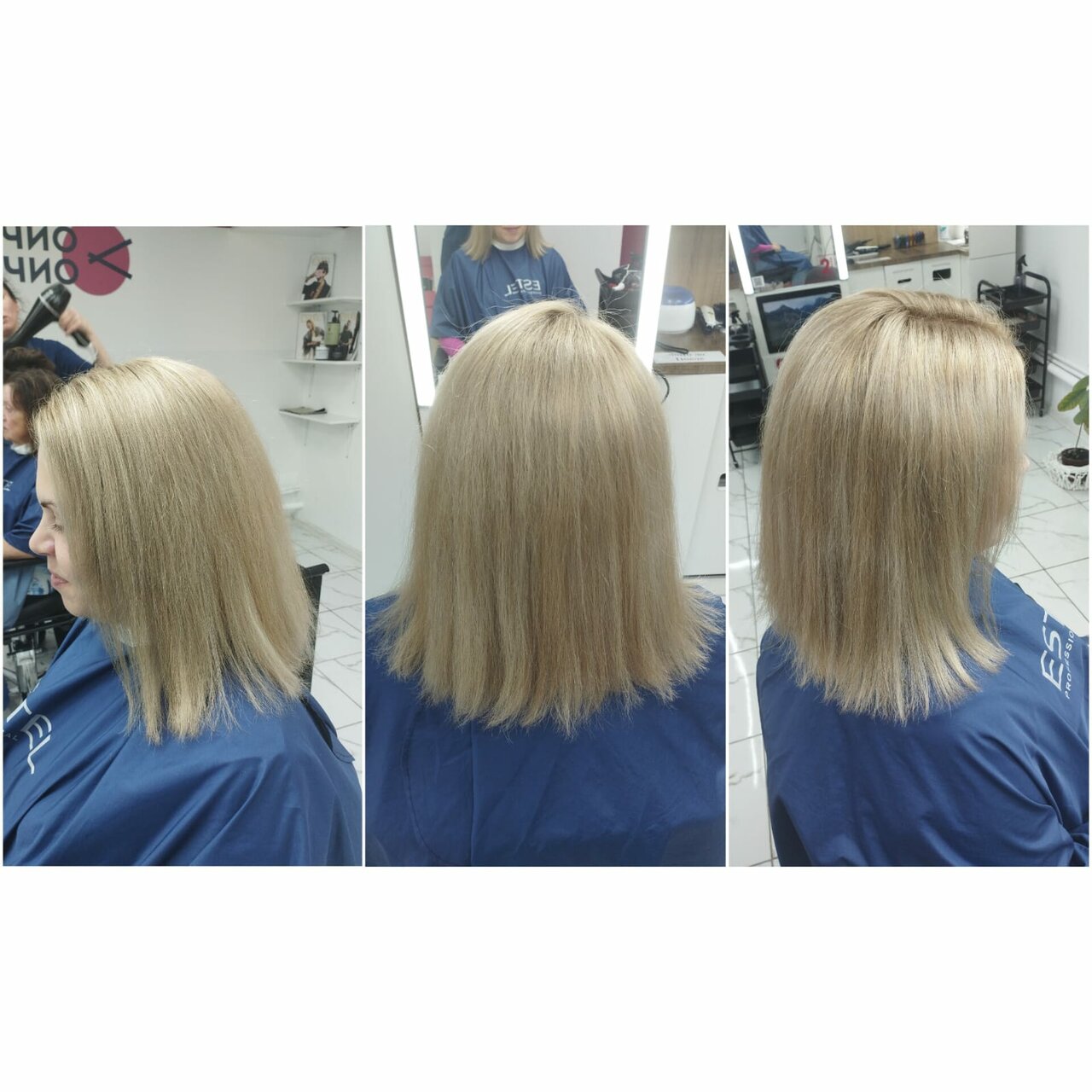 Очень уютный и стильный салон. Была на окрашивании у Алёны — очень понравилось! Теперь буду записываться только к ней. Видно, что она профессионал, помогла с выбором цвета и получилось так, как я хотела)) Волосы после окрашивания мягкие и блестящие. В целом атмосфера очень приятная, весь персонал приветливый, предложили чай/кофе. Рекомендую!)