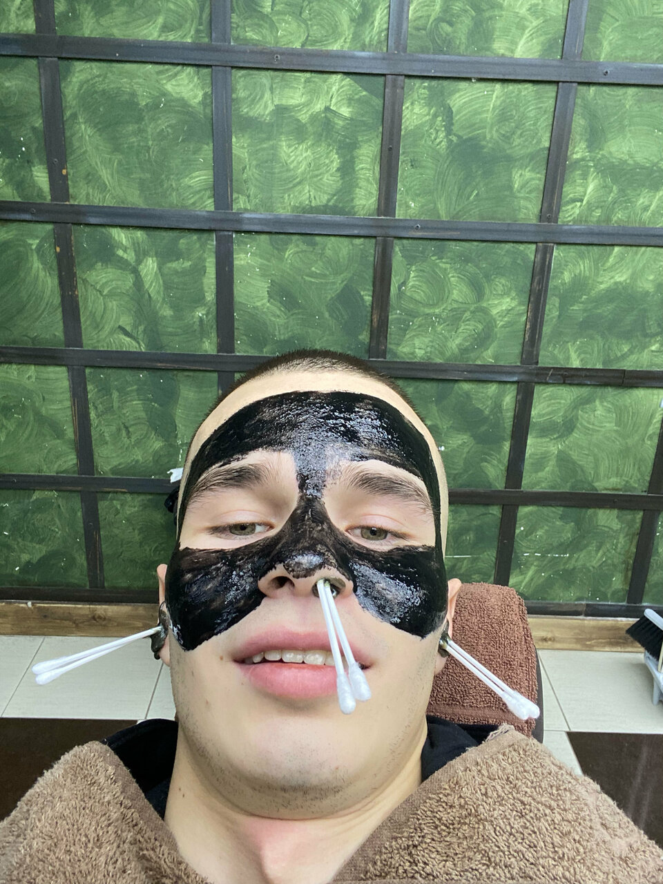 Распаривание головы или лица горячим полотенцем, королевское бритье