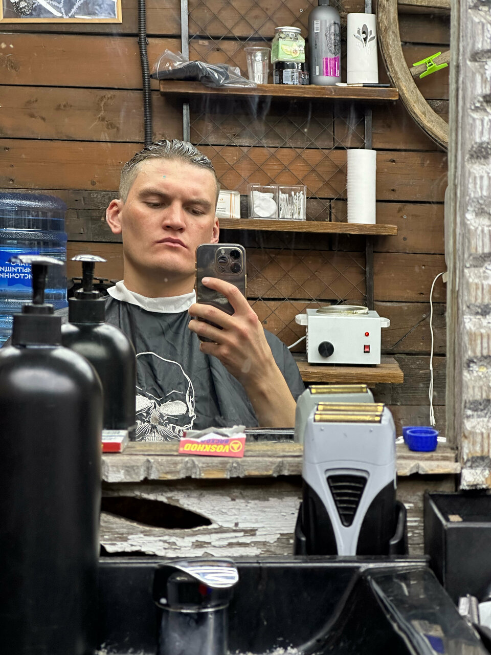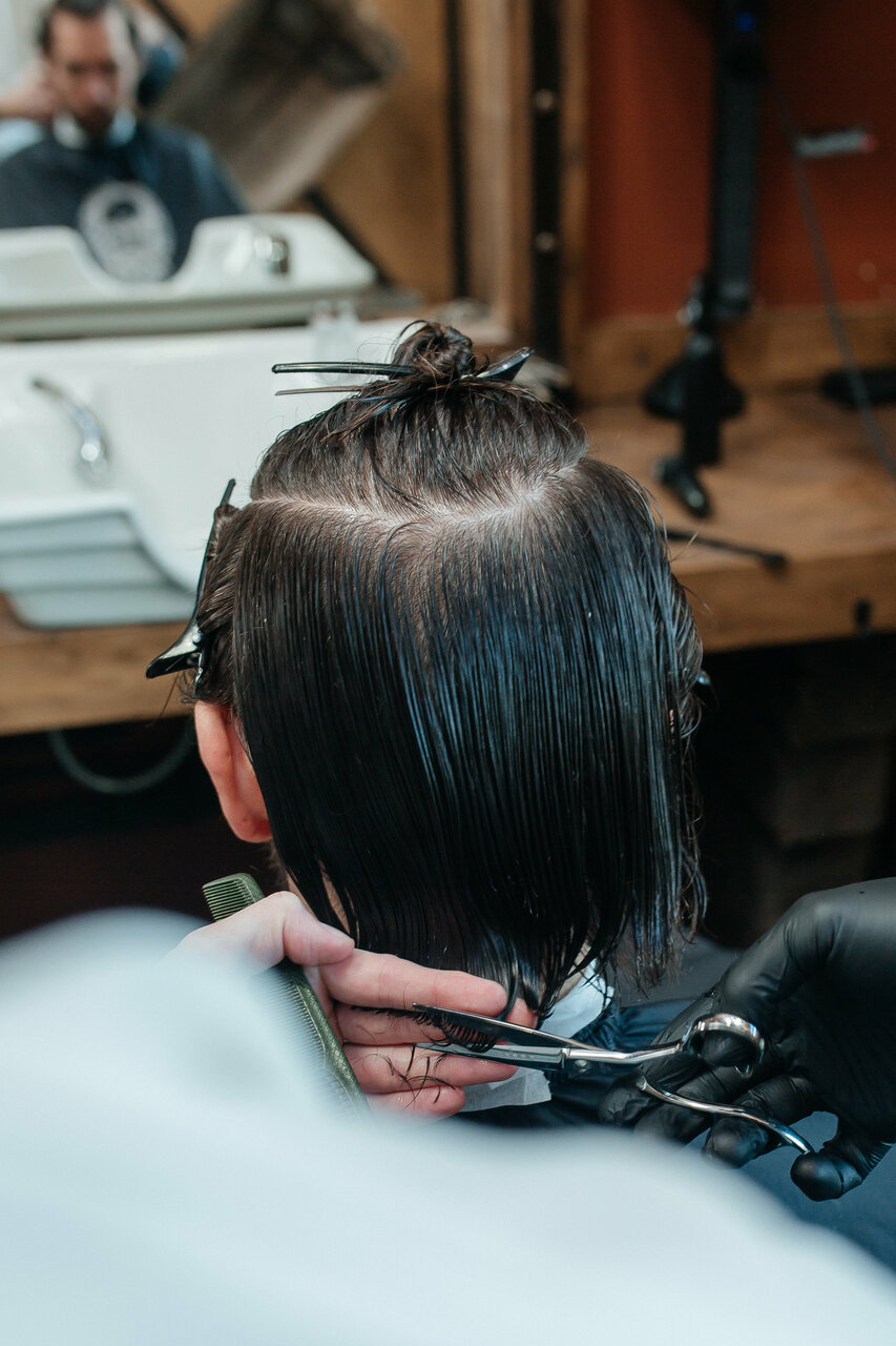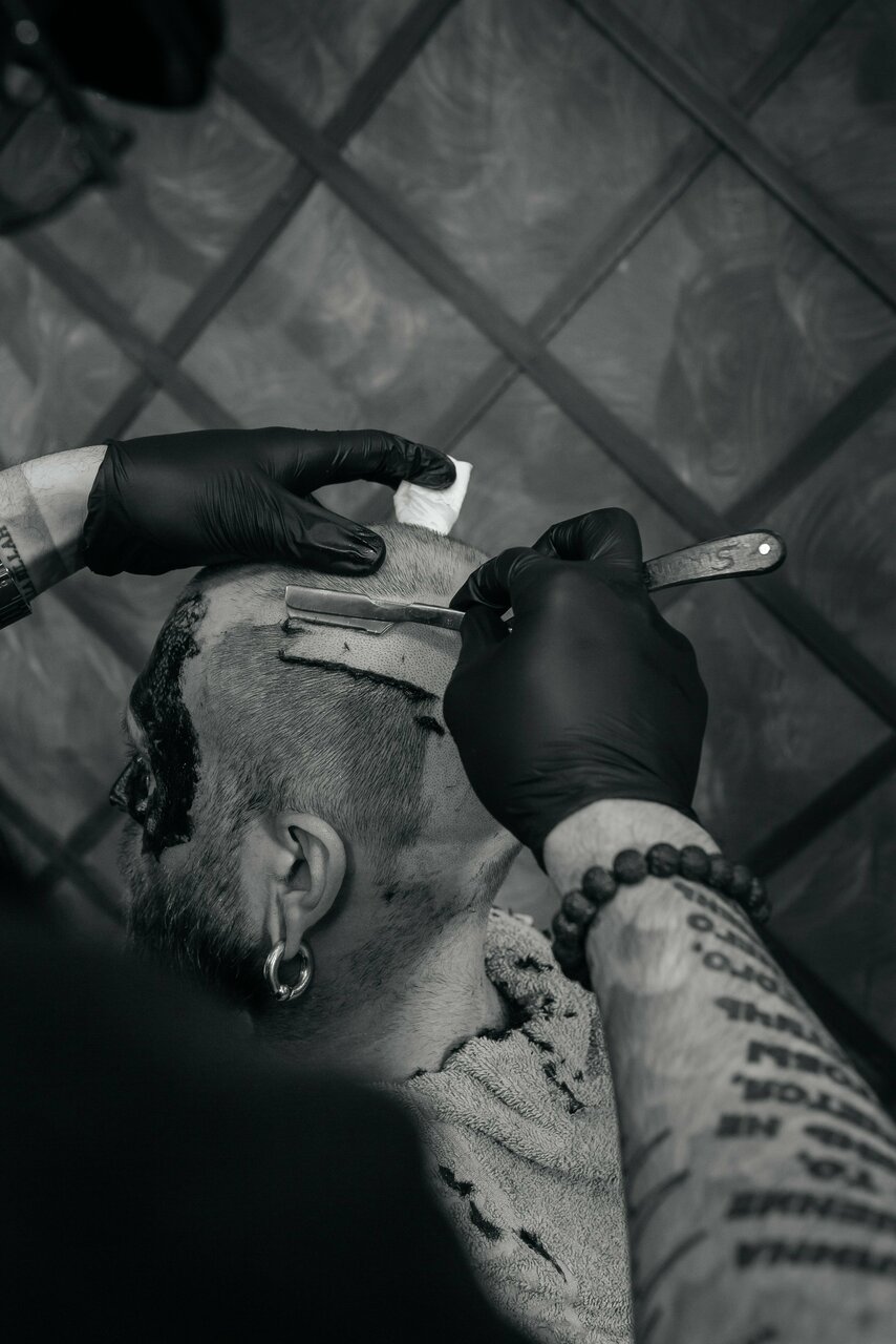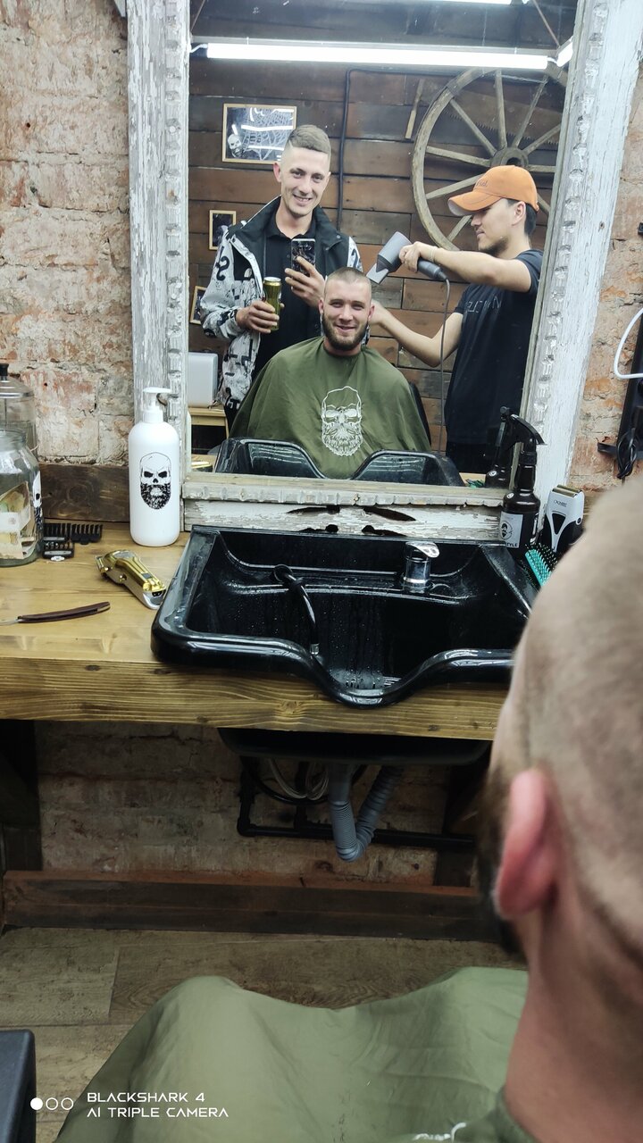 Мытьё головы шампунем личного бренда 'Чёрная Кость',стрижка машинкой под одну насадку