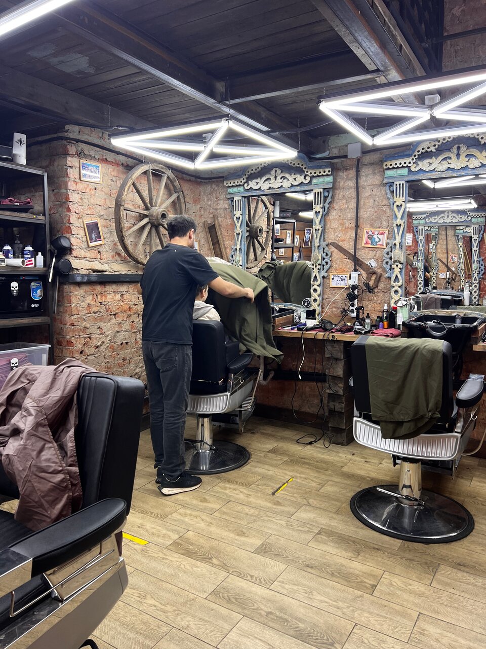 Рекомендую двух мастеров Дарипа и Умара. У Дарипа стрижка+бритьё с конца 18 начало 19 года(точно уже и не помню) , когда он работал еще на Серпуховской (отличный , понимающий мастер своего дела). К Умару попал случайно на моделирование бороды+воск и был приятно удивлен, его подходом (насколько сильно сам придирчив к геометрии контура, и к мелкими шероховатостям(где-то торчит волосок, где-то пропорция не до конца, кто давно бреется поймет))) Но тут все идеально. Само место недалеко от метро и с парковкой проблем нет.