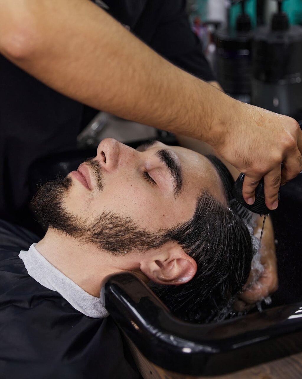 Мытьё головы шампунем личного бренда 'Чёрная Кость', укладка фирменной пастой для волос личного бренда ´Чёрная Кость´