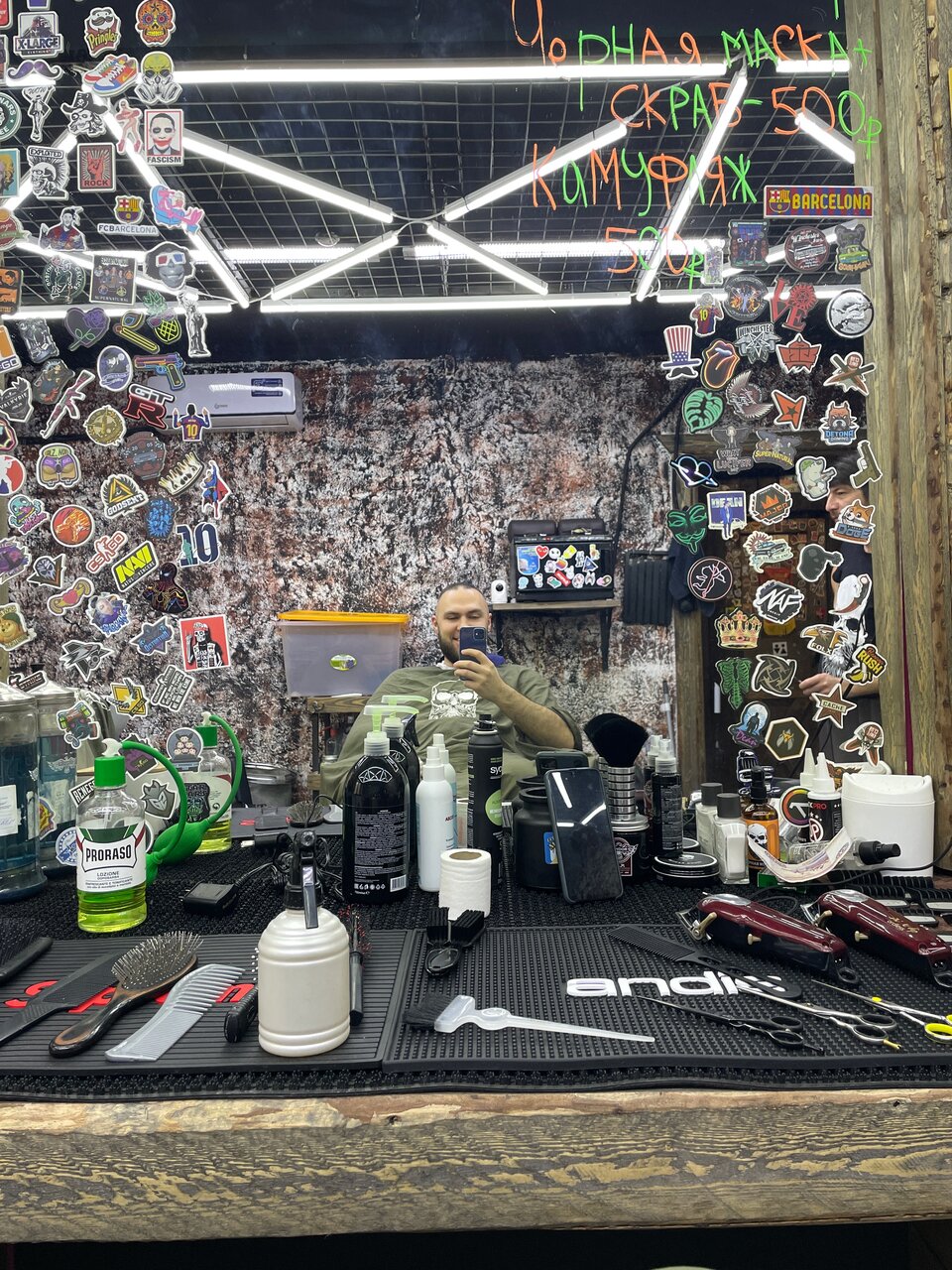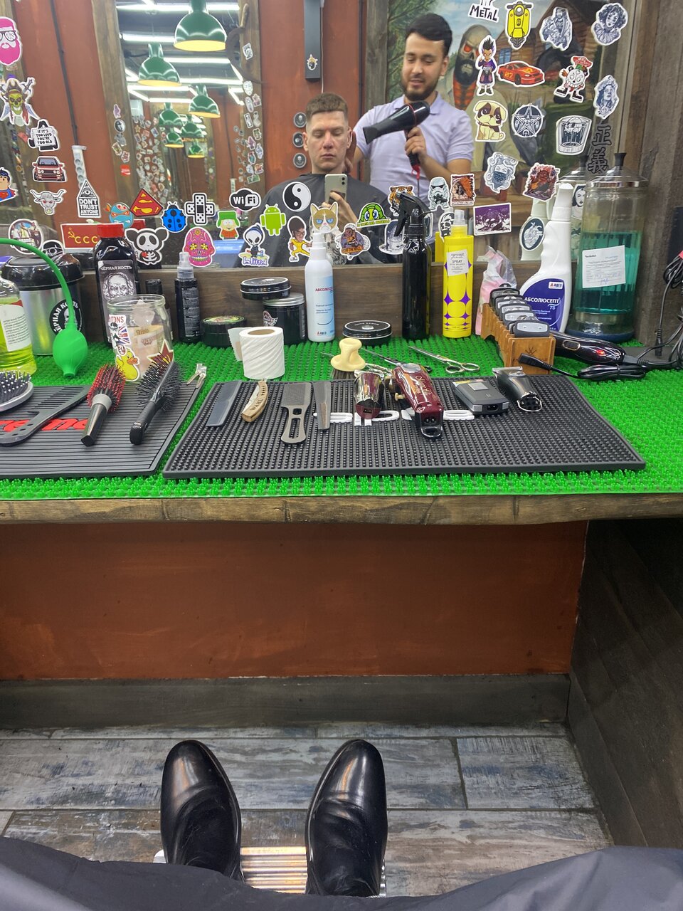 Прекрасное, атмосферное место. Талантливые мастера. Во время стрижки не скучно, можно рассматривать прикольные наклейки на зеркалах) Это для тех, кто поговорить особо не любит, во время стрижки)