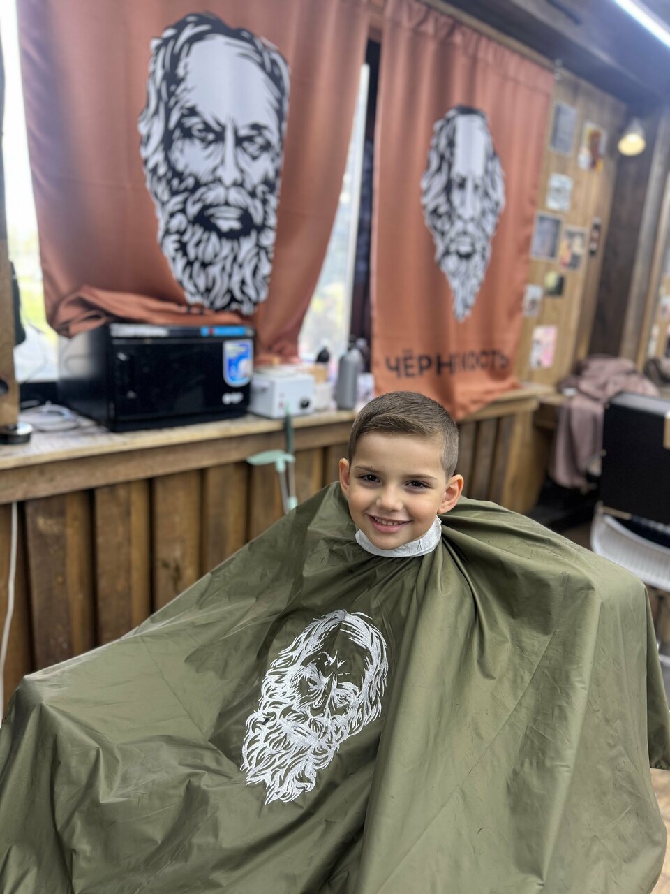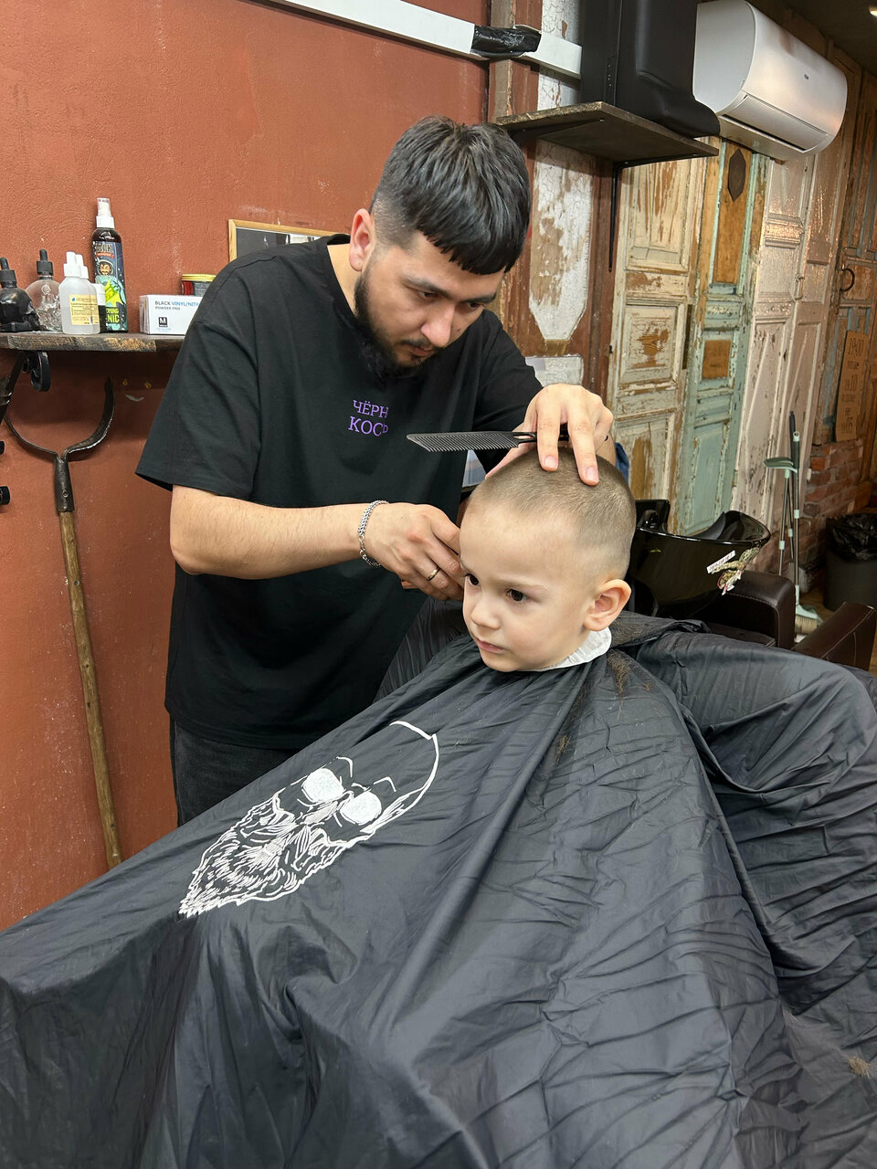 Сегодня впервые с детьми посетили Чёрную кость. были у мастера Амана, спасибо ему за терпение, ведь стричь детей не из легких дел. Очень понравилась атмосфера: очень брутально, много интересных реквизитов в оформлении, в общем в мужицком стиле))) Еще классное место ожидания, огромный экран и игры)