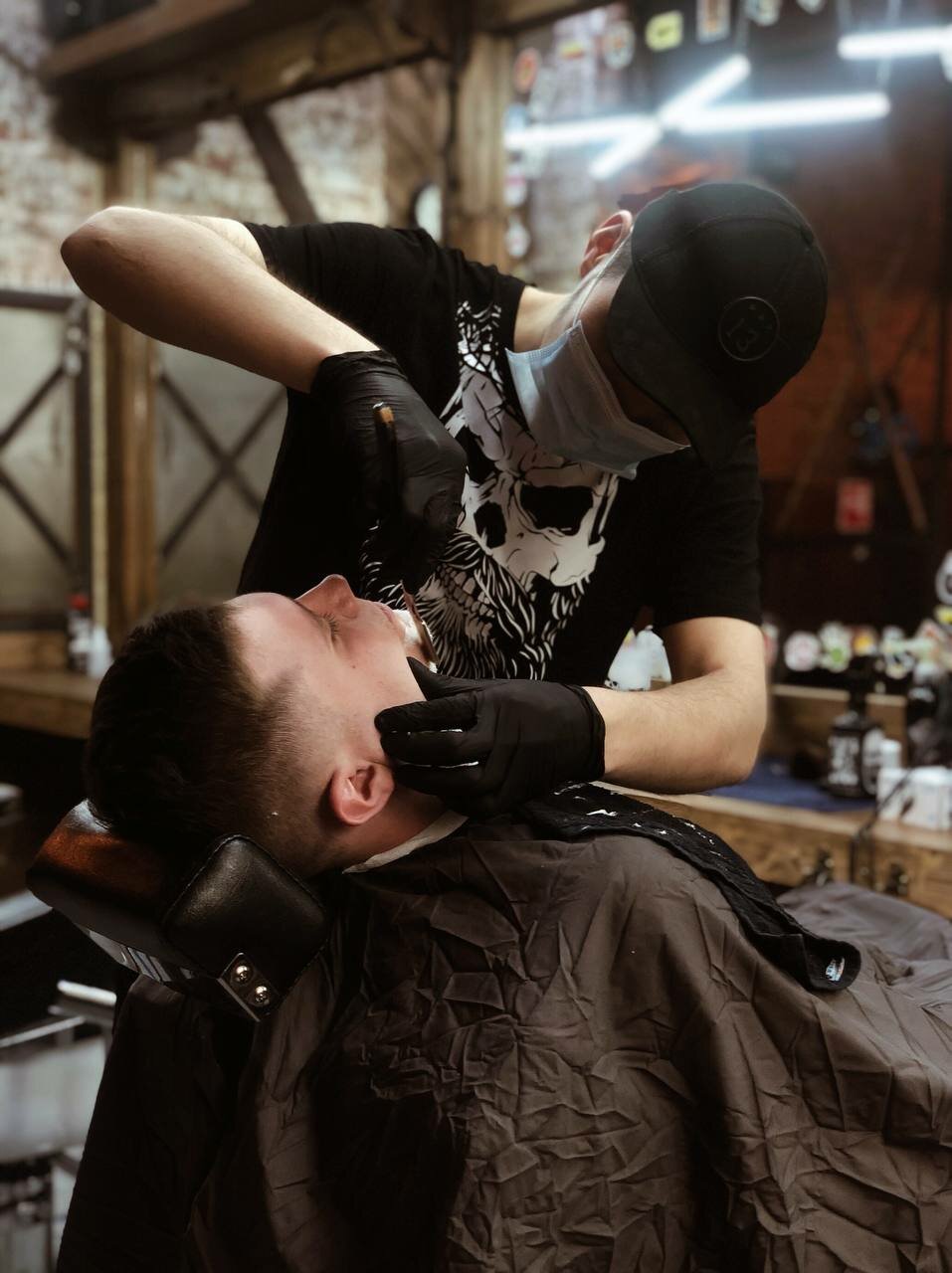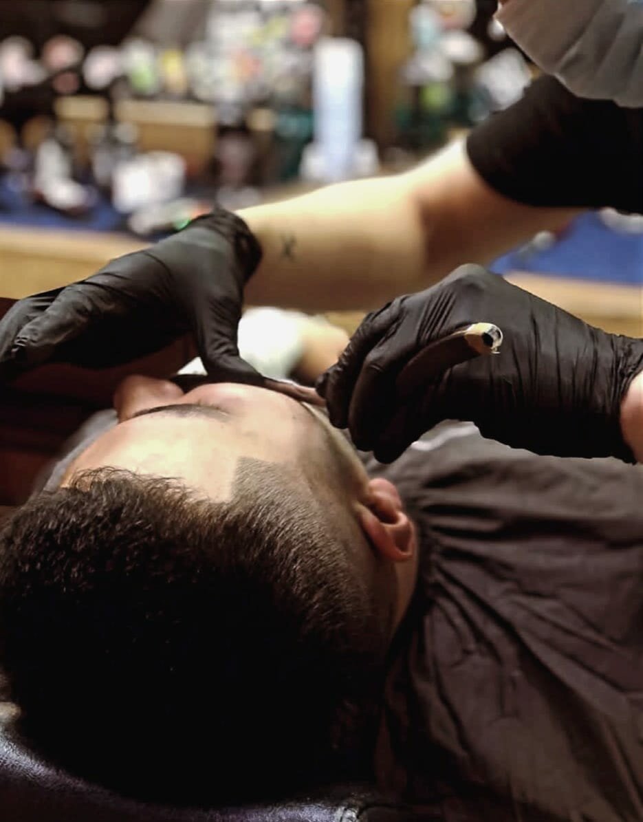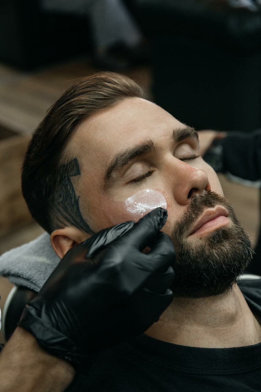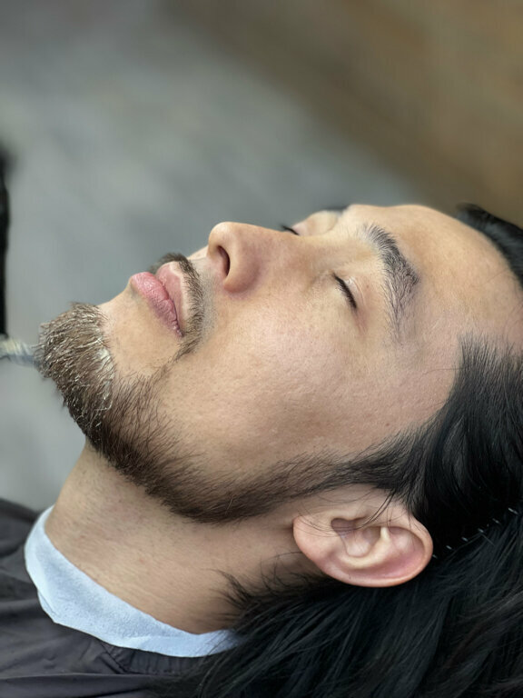 Распаривание головы или лица горячим полотенцем, королевское бритье
