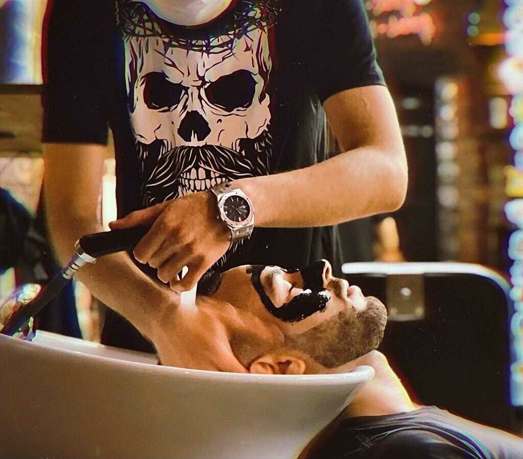 Мытьё головы шампунем личного бренда 'Чёрная Кость',стрижка машинкой под одну насадку