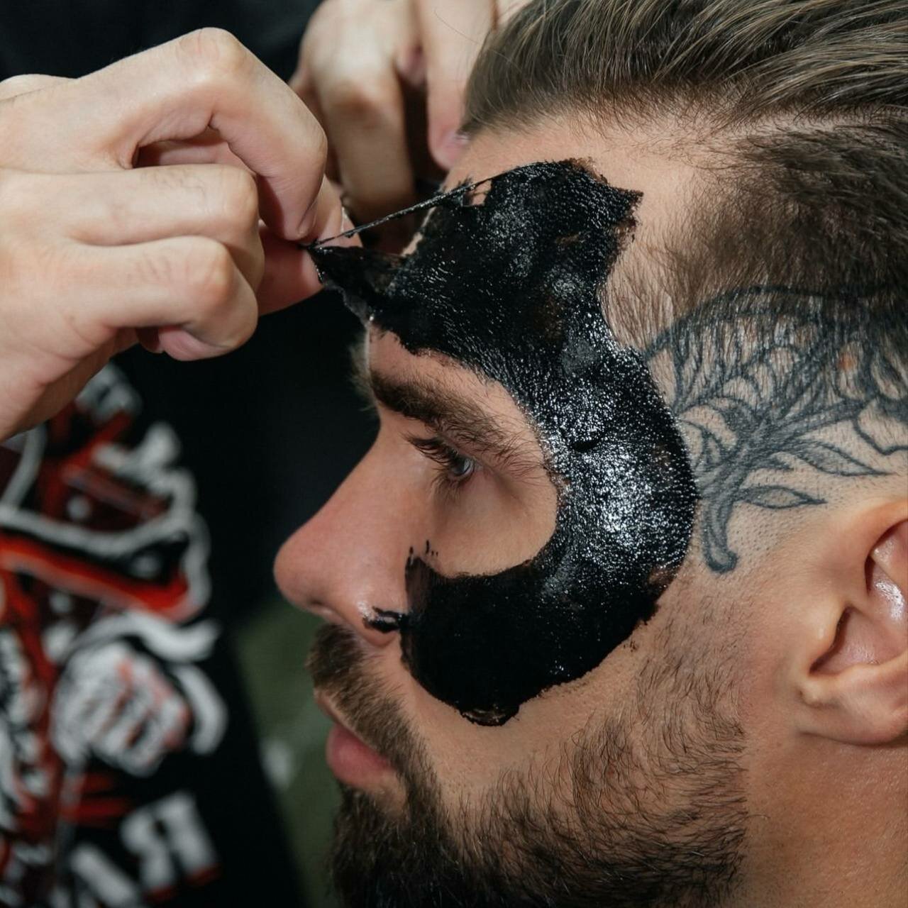 Обрабатываем лицо хлоргексидиномлегкими массажными движениями наносим скрабраспариваем лицо и наносим чёрную маскуделаем легкий массаж шеи и головыснимаем маску