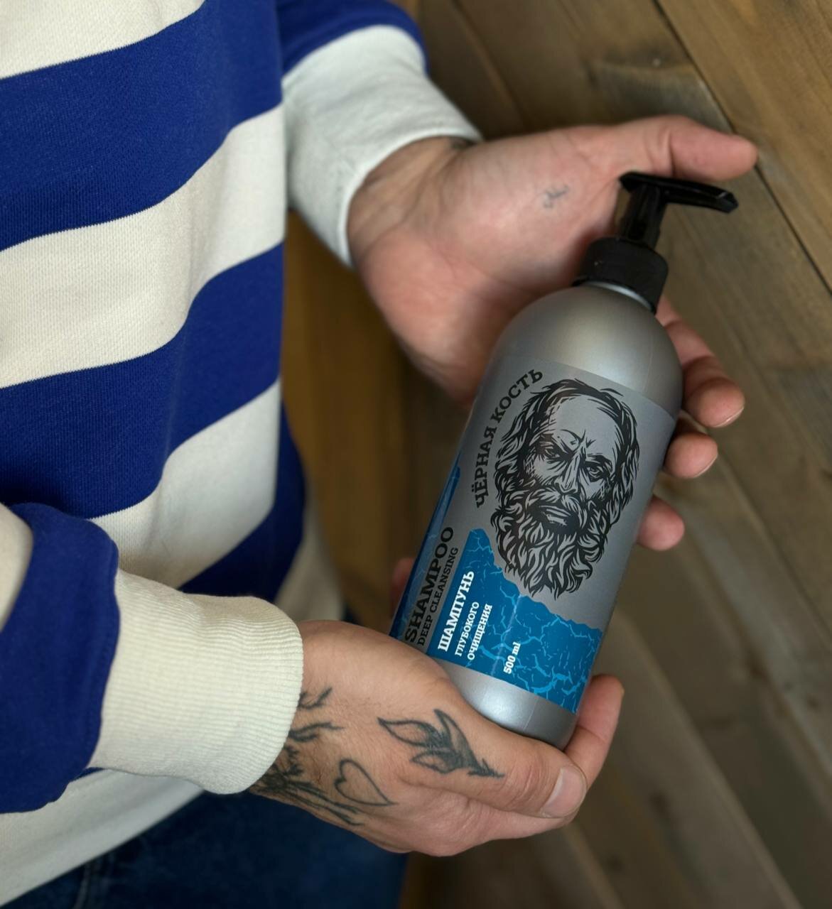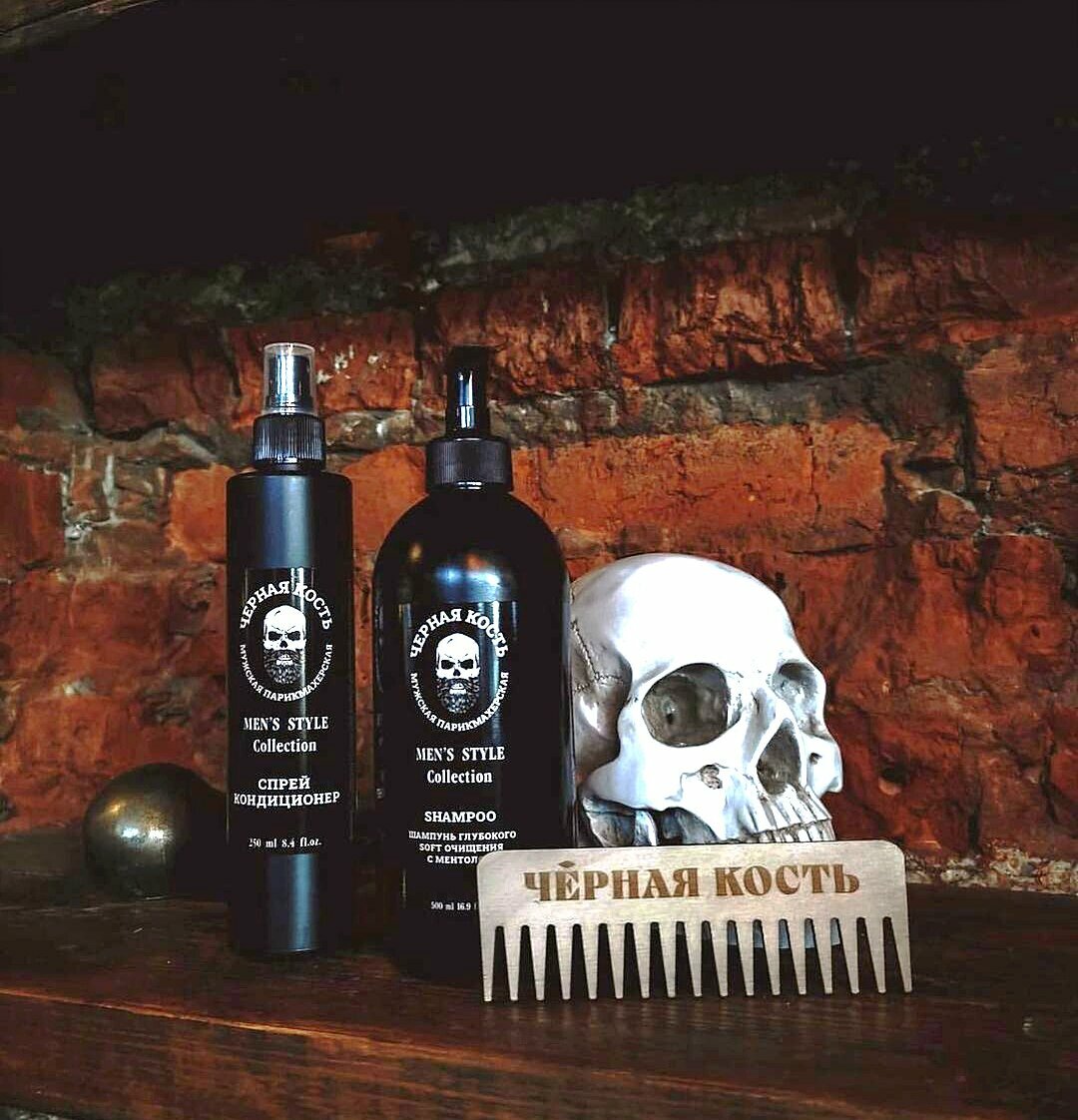 Мытьё головы шампунем личного бренда 'Чёрная Кость', укладка фирменной пастой для волос личного бренда ´Чёрная Кость´