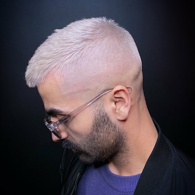Платиновый блонд для мужчин в Москве? Барбершоп Догма! Профессиональное окрашивание, стойкий результат, стильный образ. Запишитесь!