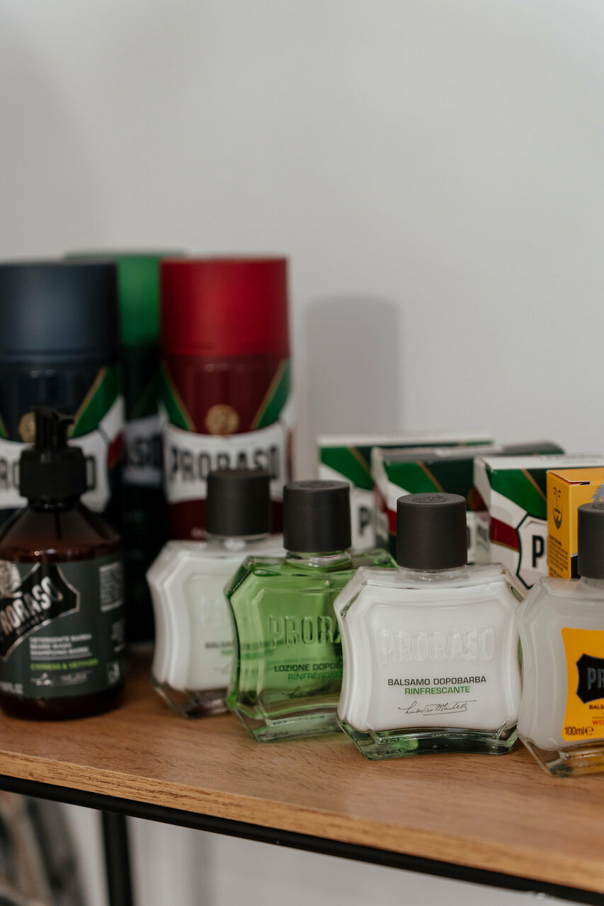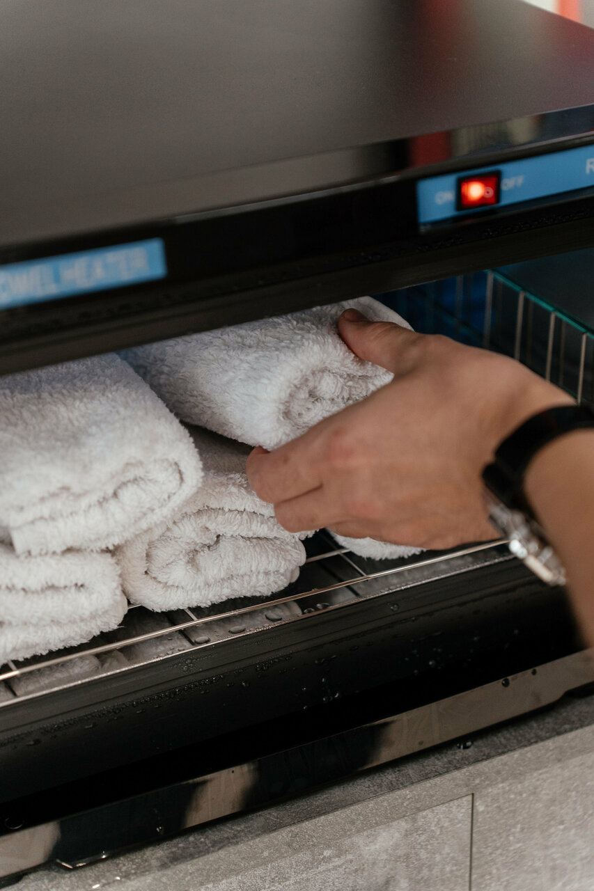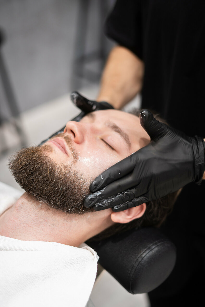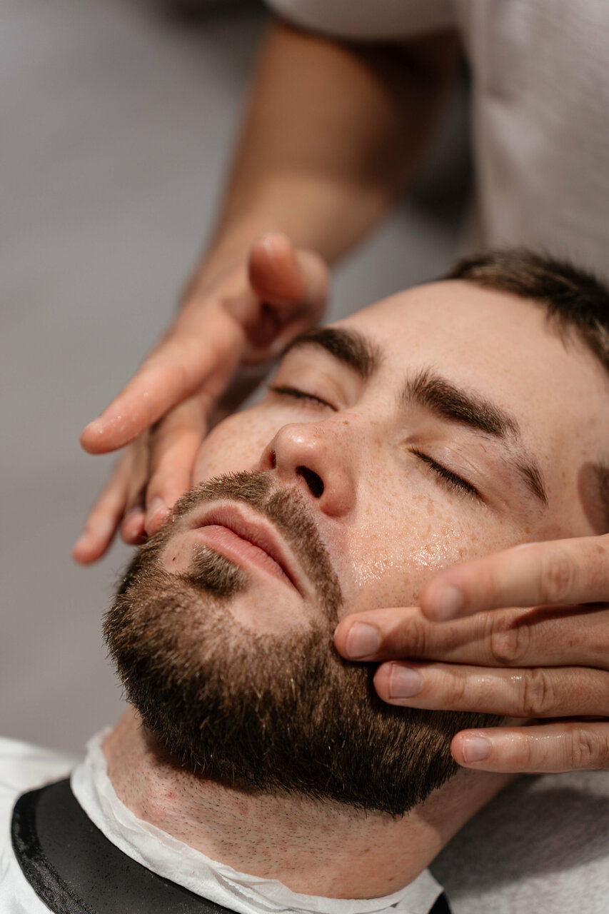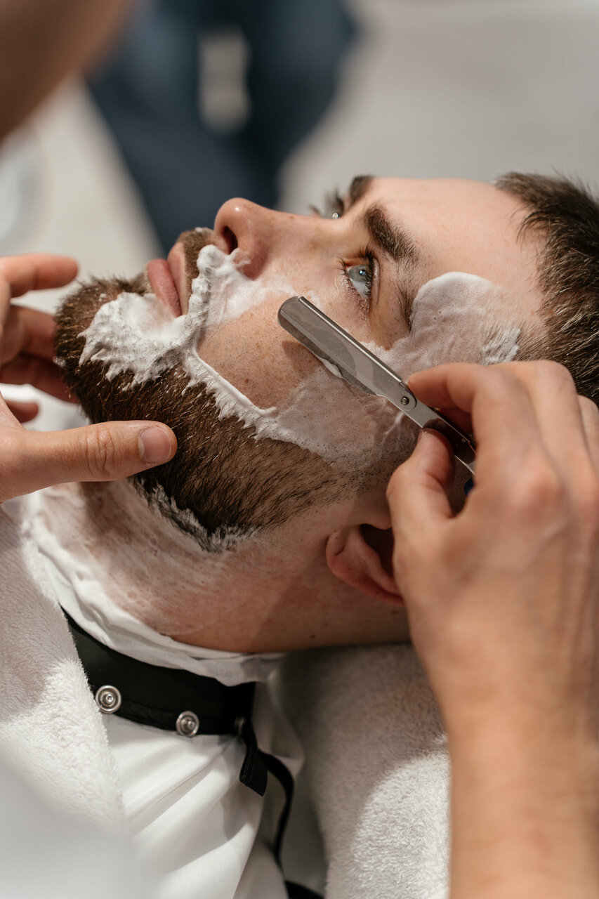 Бритье лица или бритье головы опасной бритвой (шавет) с предварительным распариванием горячим полотенцем с эфирными маслами и использованием уходовых средств для кожи