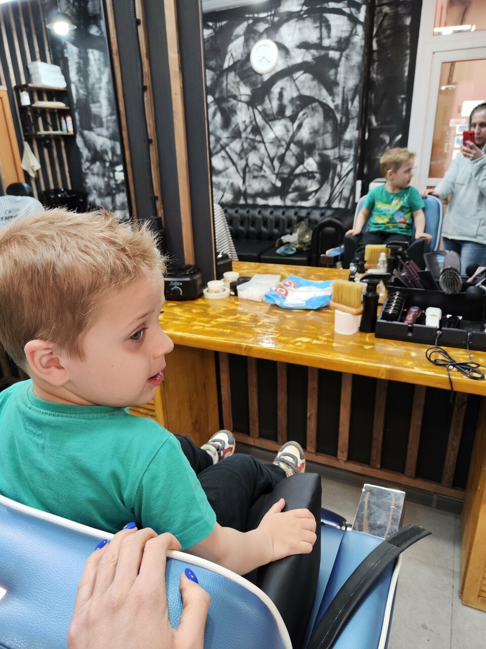 - Доброжелательное, вежливое общение; Включение мультиков для детей; Вежливый и аккуратный парикмахер; Обслуживание на высоком уровне; Удобные сидушки для детей
