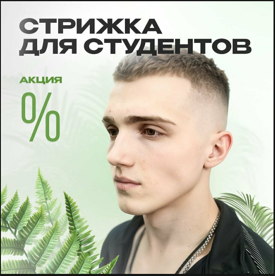 Студенческая стрижка – стиль со скидкой!Учёба – не повод откладывать хороший стиль на потом! В будние дни с 12:00 до 18:00 мы делаем стрижки для студентов по специальной цене.Это отличная возможность освежить образ и при этом сэкономить.