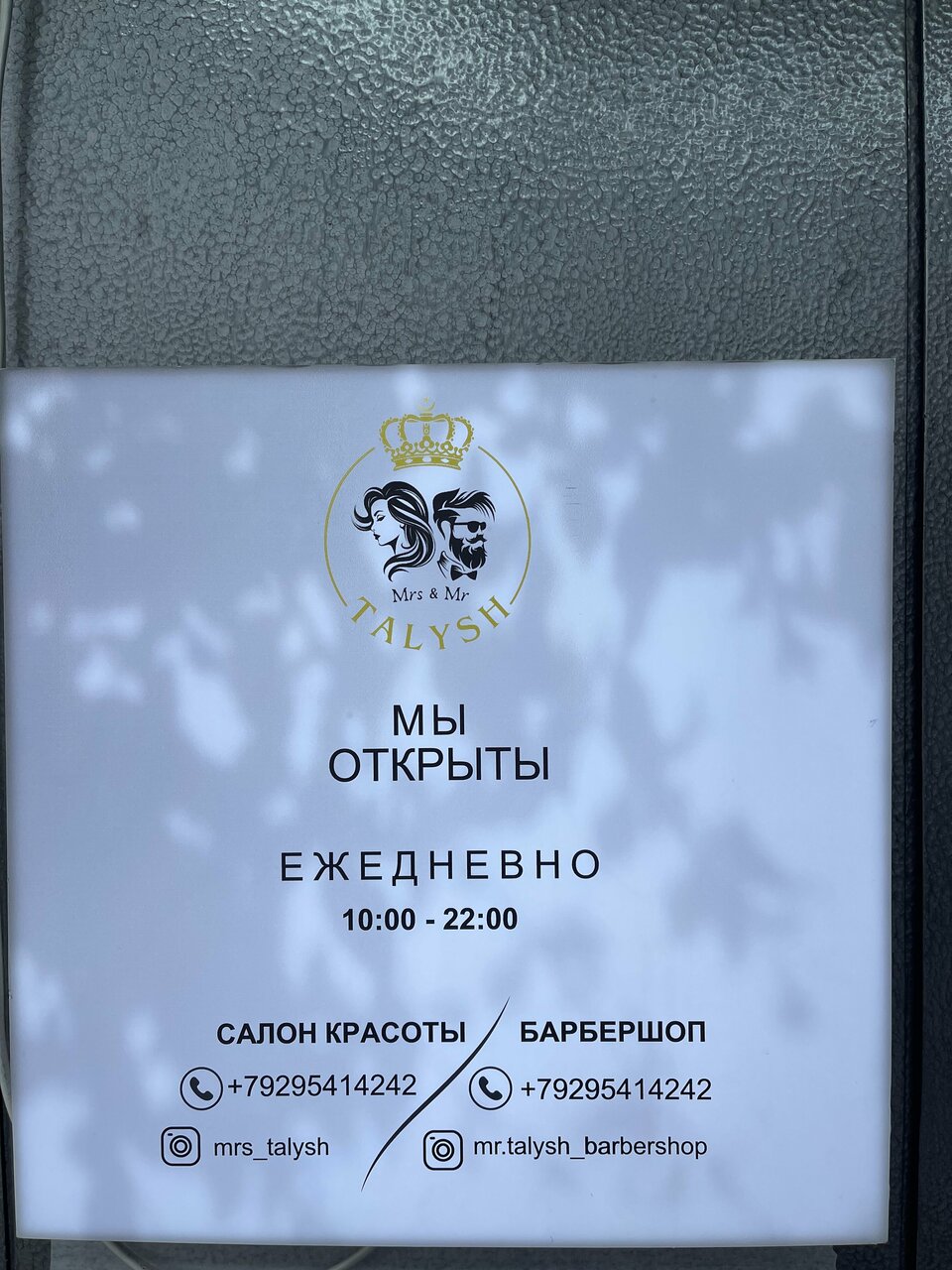 Салон находится по адресу: Саранская улица, 7. Работает ежедневно с 10:00 до 22:00. Записаться и получить консультацию можно по телефону барбершопа: +7 (929) 551-42-42. Более подробная информация представлена на сайте: https://mrs-mr-talysh.clients.site/.