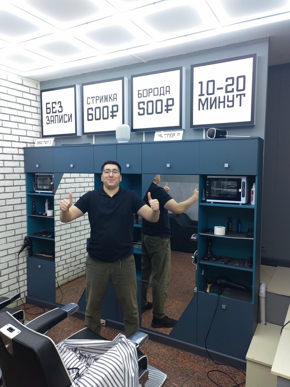 - Есть дополнительные услуги (стрижка бороды, игровая приставка).