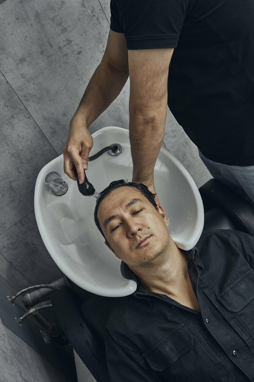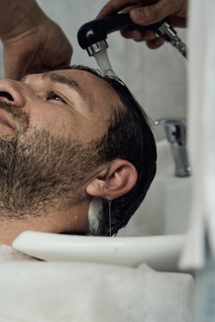 Мытьё головы до стрижки и споласкивание после стрижки.
