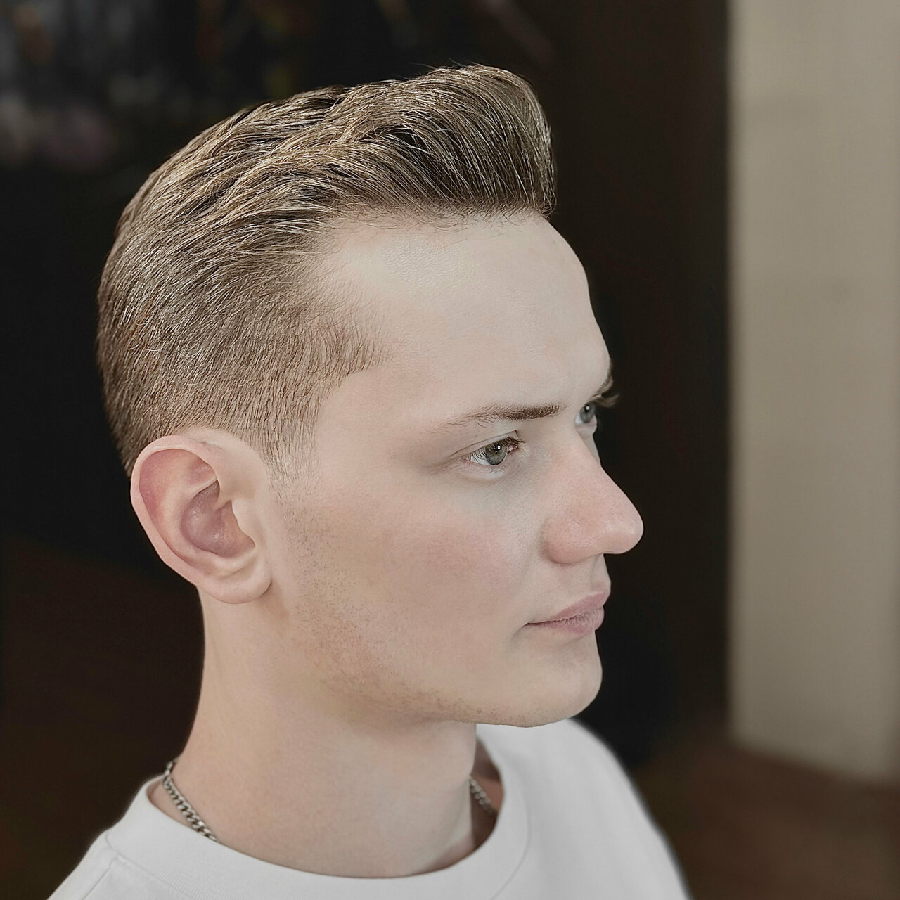 Мужская стрижка — включает стрижку с укладкой, мытье головы, очищение лица скрабом, горячее полотенце для расслабления и депиляцию воском 1 зоны (нос, уши или брови).
