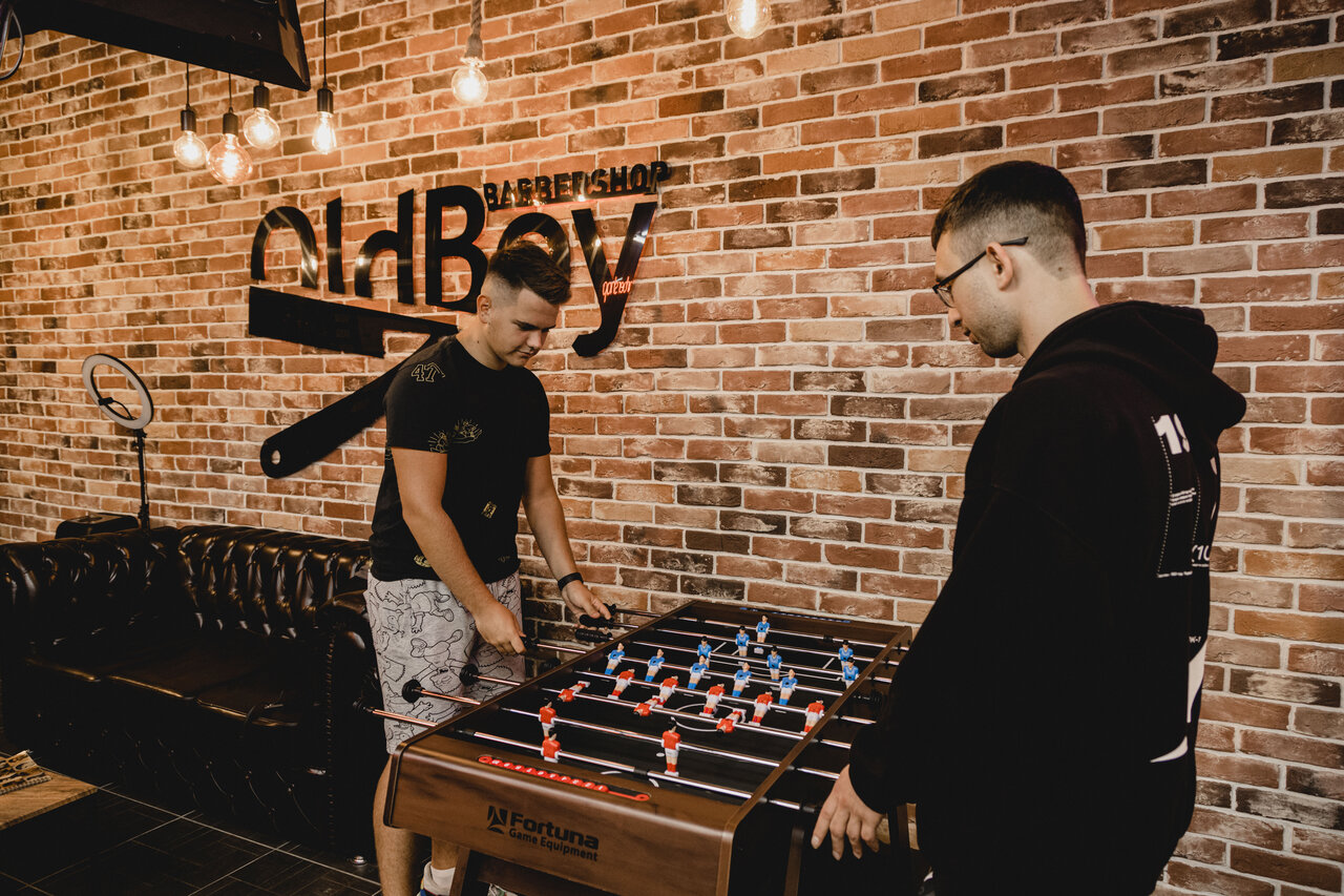 Красивый свежий интерьер, есть настольный футбол, угостили вкусным лимонадом. Барбер Дони подстриг быстро и хорошо.