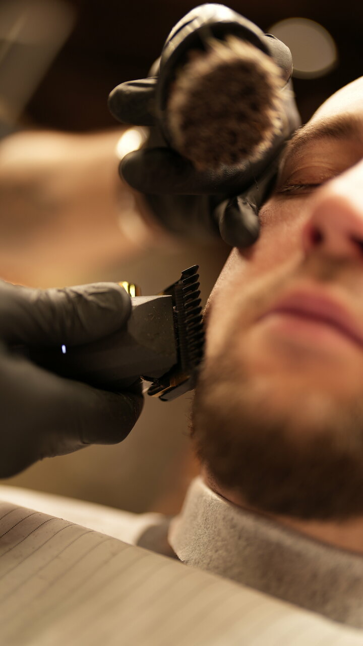 Услуга выполняется на премиальной косметике и включает в себя мытье бороды, стрижку бороды машинкой и/или ножницами, распаривание горячим полотенцем, формирование контуров опасной бритвой со съемным одноразовым лезвием.