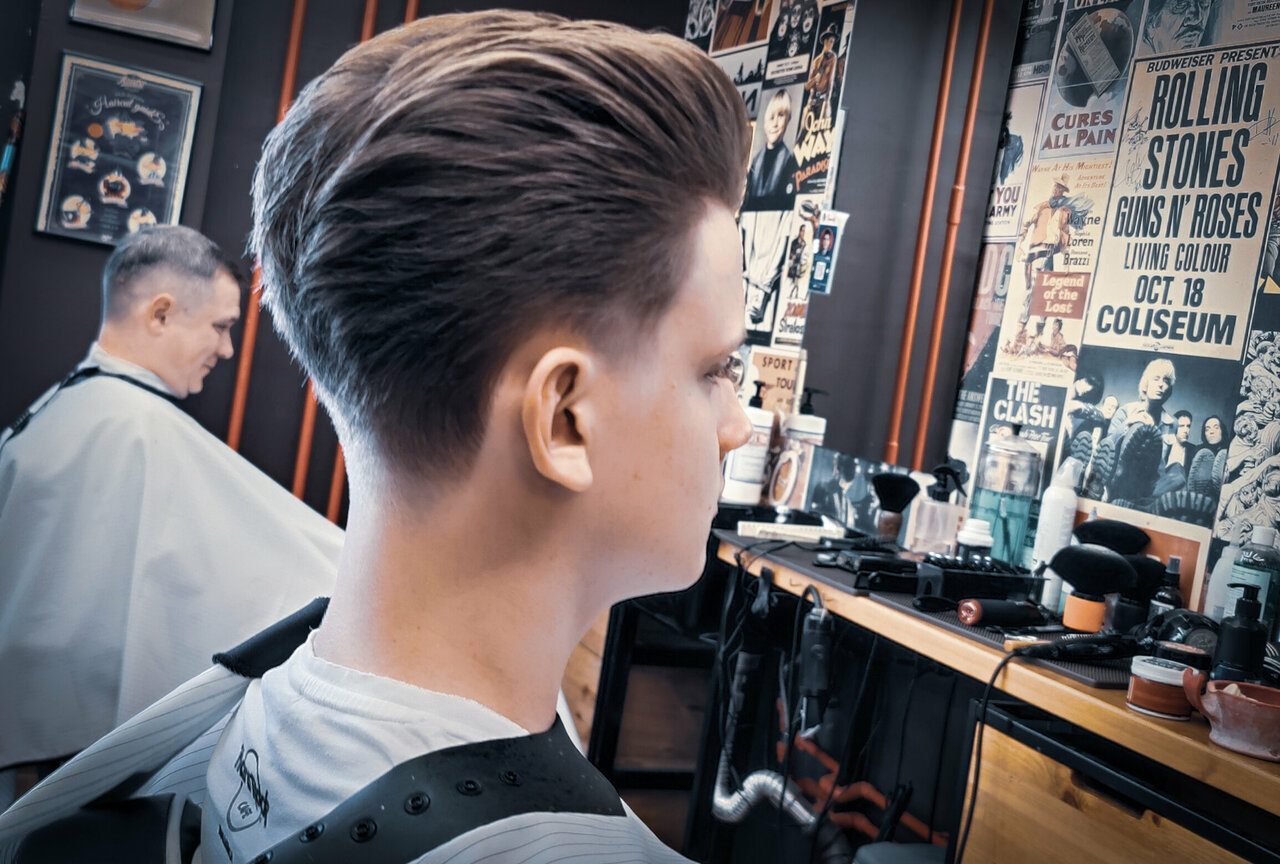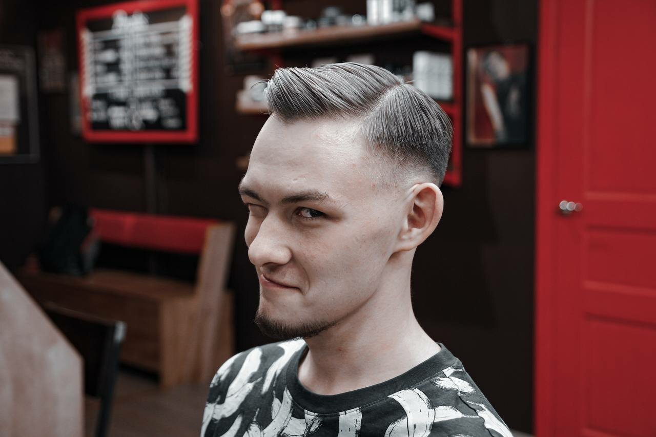 Стрижка на точке в барбершопе Pomades на Дмитровском шоссе. Услуга сайд парт для стильных мужчин. Быстрая и качественная стрижка в стиле барбершопа. Записывайтесь прямо сейчас!